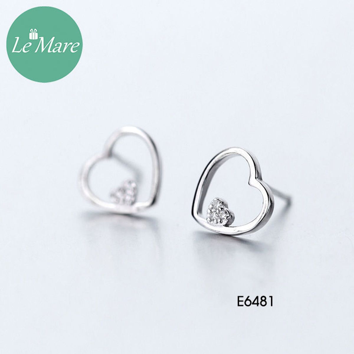 Khuyên tai tim rỗng đính đá E6481 giá sỉ - giá bán buôn