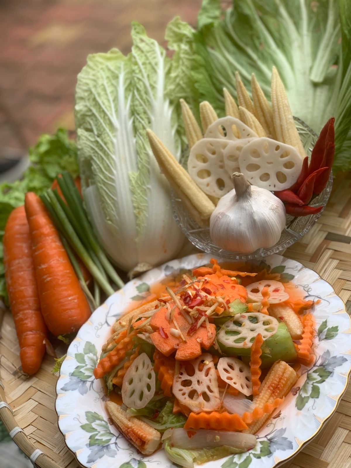 Cải thảo, cà rốt, củ sen, bắp non… được tuyển chọn tươi ngon từ những nhà cung cấp chất lượng. Để tạo nên món ăn giòn giòn, cay cay, dễ ăn, chóng ngán cho những bữa ăn đầy thịt, cá. Vị chua chua, ngọt ngọt của nước sốt, cay cay, nồng nồng của tỏi, ớt, kiệu hòa với màu xanh của cải thảo, cải sậy, màu trắng của kiệu, củ sen, màu vàng nhạt của bắp non, màu đỏ của ớt.. tạo nên món ăn vô cùng bắt mắt. Món ăn này được rất chuộng vào những mùa tết nhưng 2AN FOOD vẫn phục vụ quý khách tất cả mua trong năm.