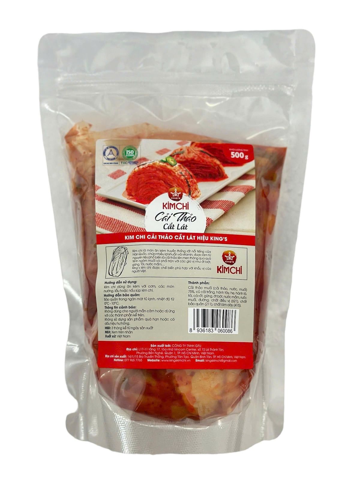 Cải thảo muối (cải thảo, nước, muối) 75%, củ cải trắng, hành tây, hẹ, hành lá, tỏi, cà rốt, gừng, ớt bột, nước mắm, mắm tép, đường, chất điều vị (E621), chất bảo quản (E211), chất làm dày (E415).