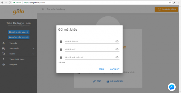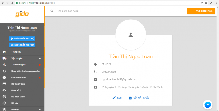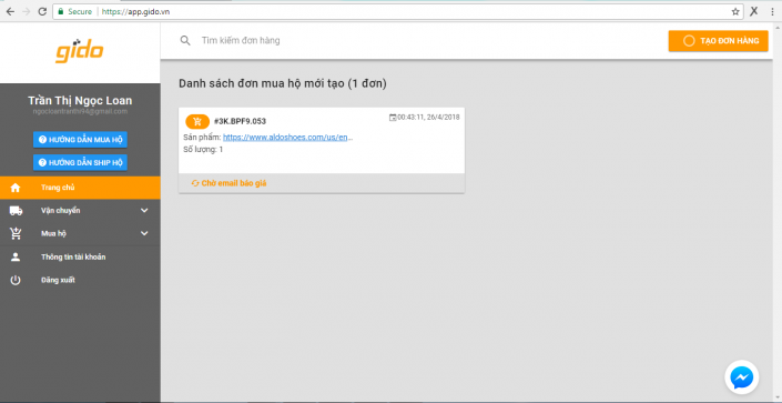 Không cần tìm kiếm đâu xa, bạn chỉ cần nhìn góc phải phía trên màn hình và nhấp vào nút màu cam “TẠO ĐƠN HÀNG” là bạn bắt đầu trải nghiệm dịch vụ mua hộ và vận chuyển của Gido.