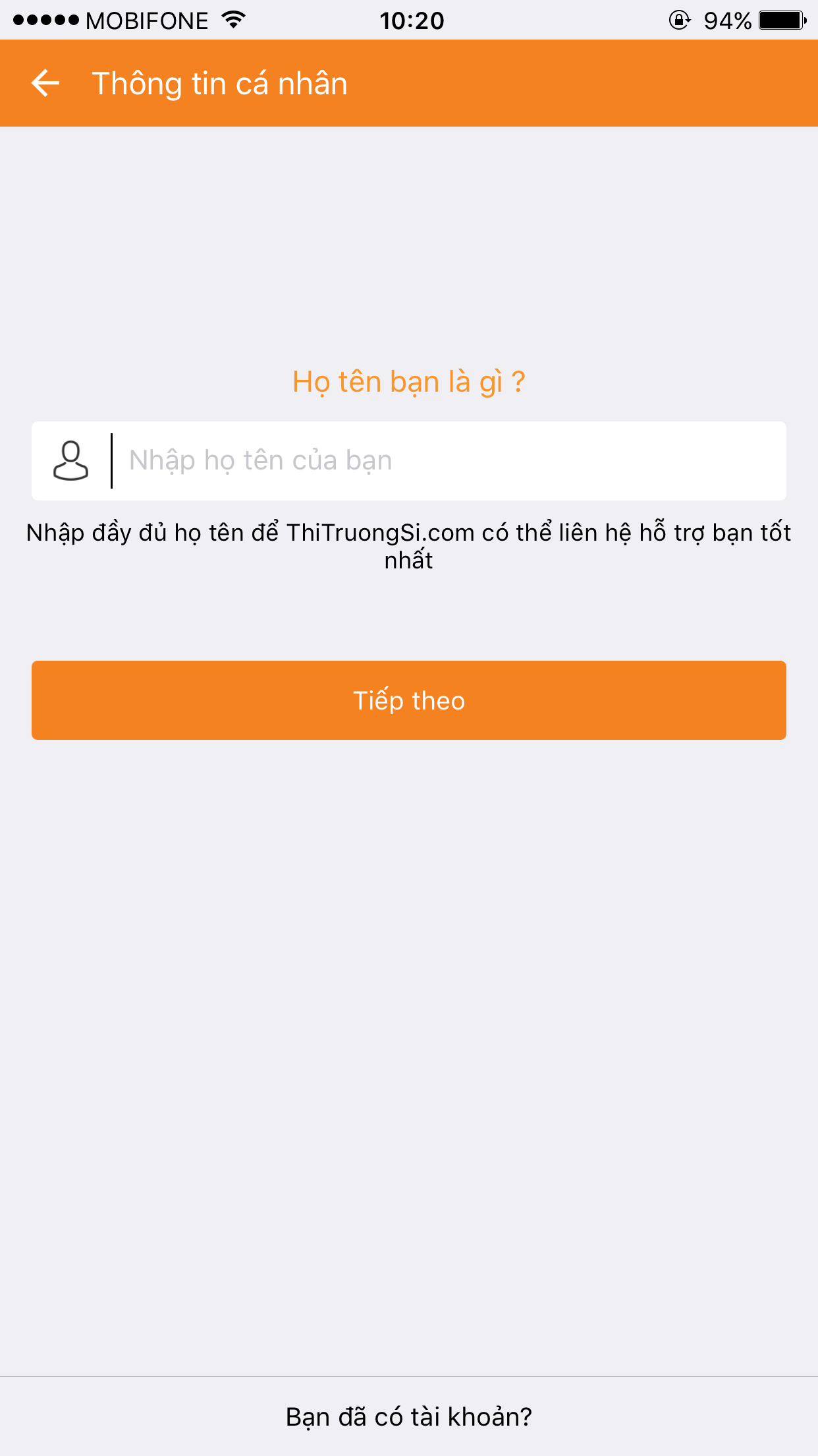 Bước 4: Điền đầy đủ họ tên để ThiTruongSi.com có thể liên hệ hỗ trợ bạn tốt nhất.