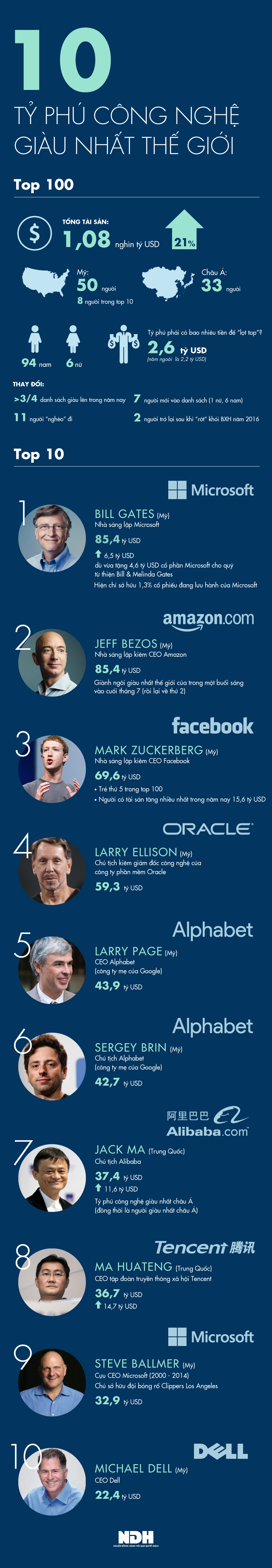 [Infographic] 10 tỷ phú công nghệ giàu nhất thế giới