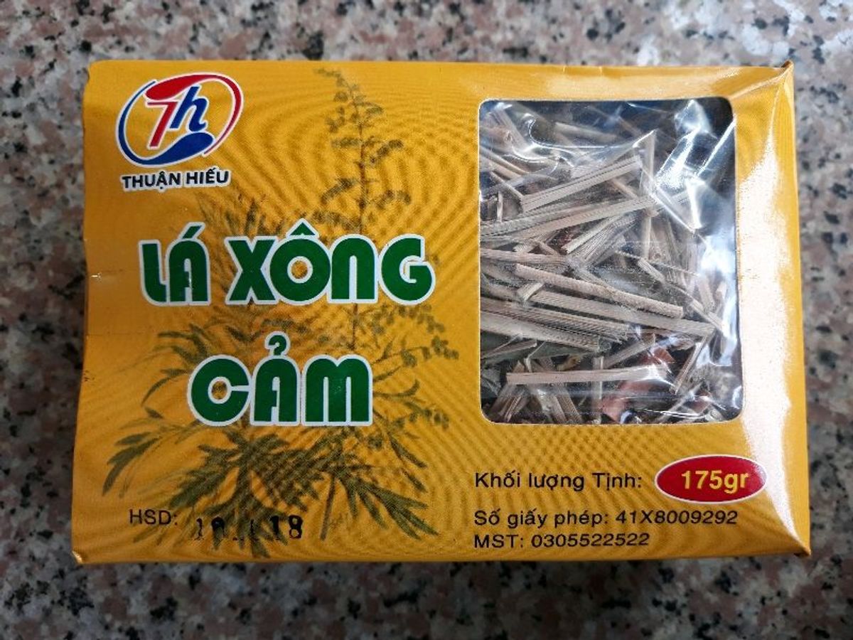 Sản phẩm gồm 1 gói lá khô và 1 gói rượu gừng.