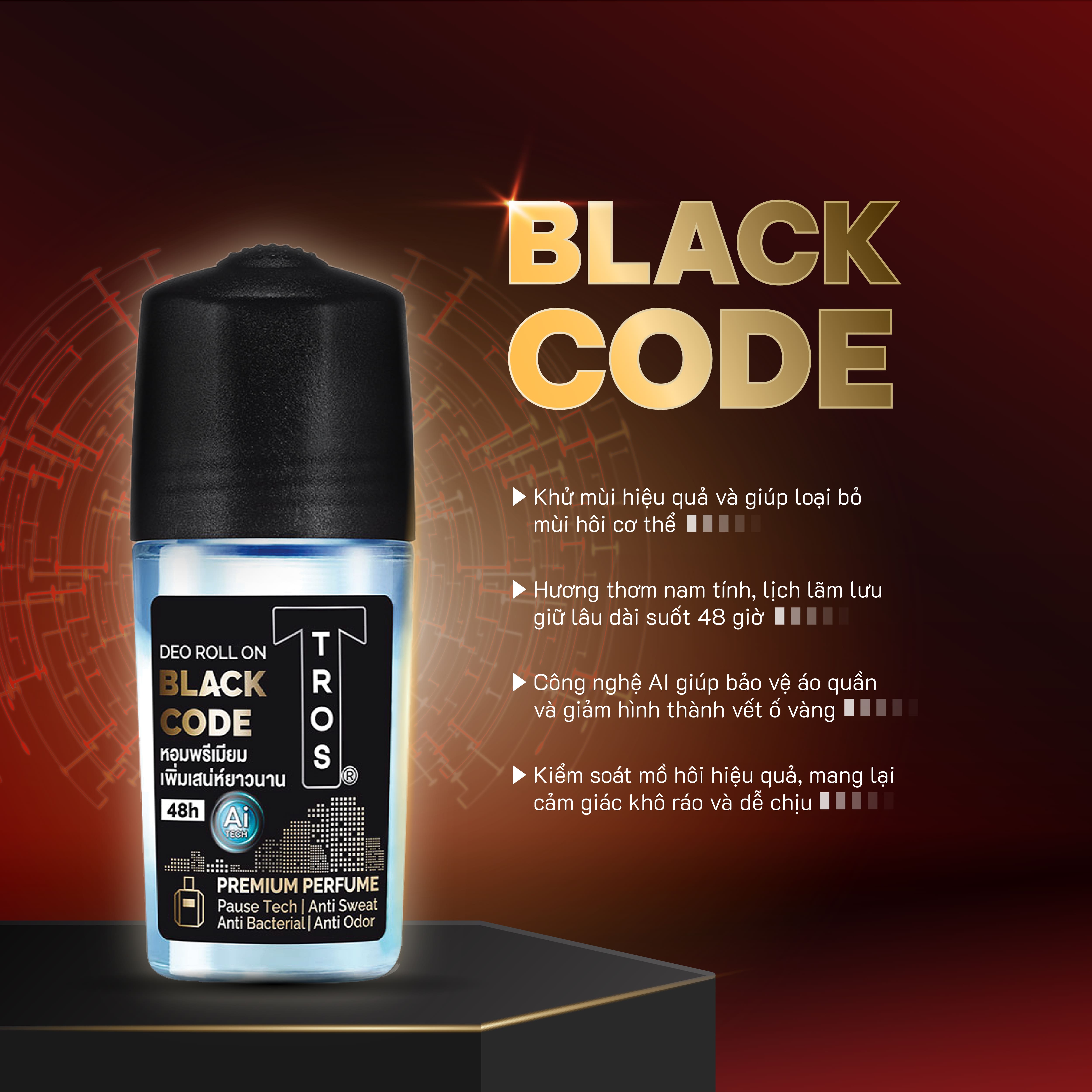 LĂN KHỬ MÙI NAM TROS BLACK CODE CHỐNG Ố VÀNG, THƠM NHƯ NƯỚC HOA 48H - PHÙ HỢP CHO NHỮNG DỊP ĐẶC BIỆT