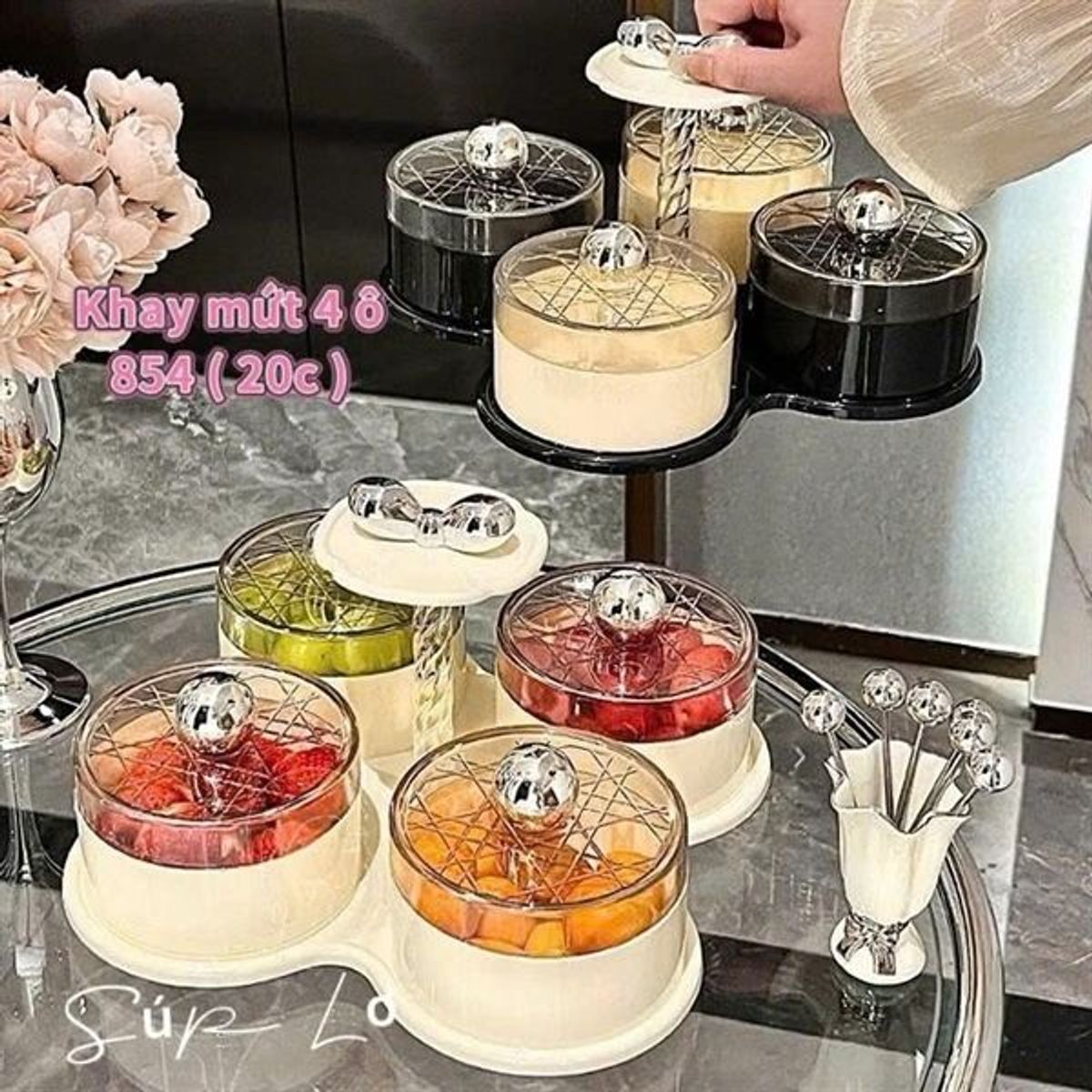 + Đặc biệt vào những ngày Tết trên bàn lại càng không thể thiếu 1 khay bánh mứt nữa ạ, nhưng riêng về khay đựng này thay vì hết những ngày Tết chúng ta cất vào thì mẫu này chúng ta còn có thể sử dụng được để đựng trái cây ăn hay lấy riêng từng hủ đựng đựng vật dụng hay tiêu muối trong bếp ạ.