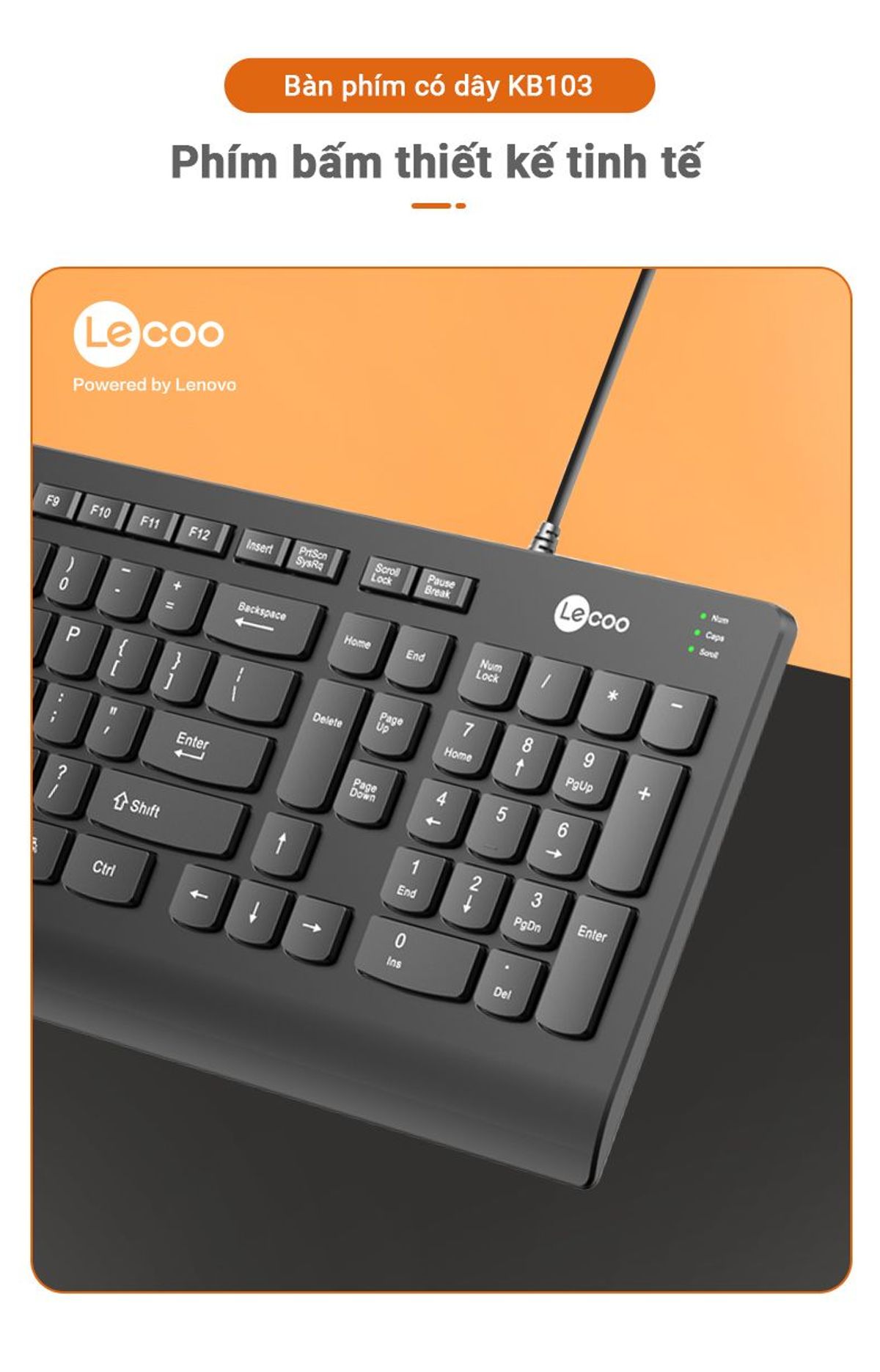 Bàn phím của Lecoo đi kèm với bố cục tiêu chuẩn nên người dùng mới sẽ không gặp khó khăn khi chuyển sang bàn phím Lecoo này. Bàn phím Lecoo KB103 này được thiết kế cho công việc và sử dụng hàng ngày. Tay sẽ không dễ bị đau khi sử dụng bàn phím này. Bố cục của bàn phím này sử dụng một bố cục tiêu chuẩn nên không cần phải điều chỉnh lại khi thay đổi sang bàn phím mới này. Bàn phím này có thể được sử dụng trên nhiều mẫu PC hoặc máy tính xách tay, miễn là nó được trang bị cổng USB.