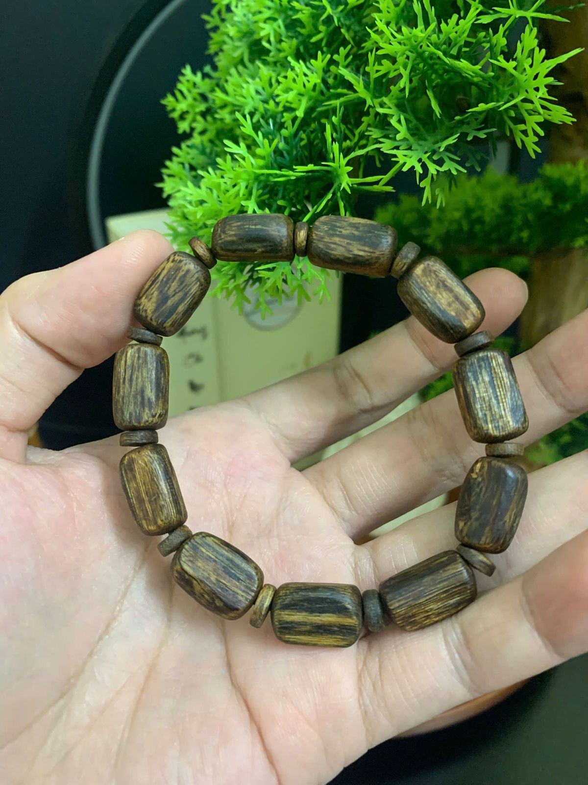 Vòng Tay Trầm Hương Kỳ Hải Nam Tâm Kỳ Dầu – Dạng Trụ Trúc Thô 9-10li
