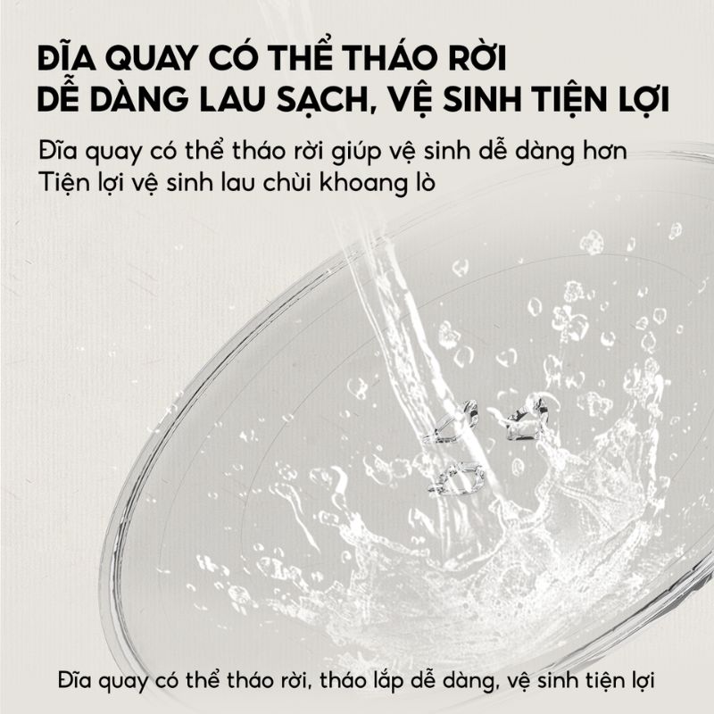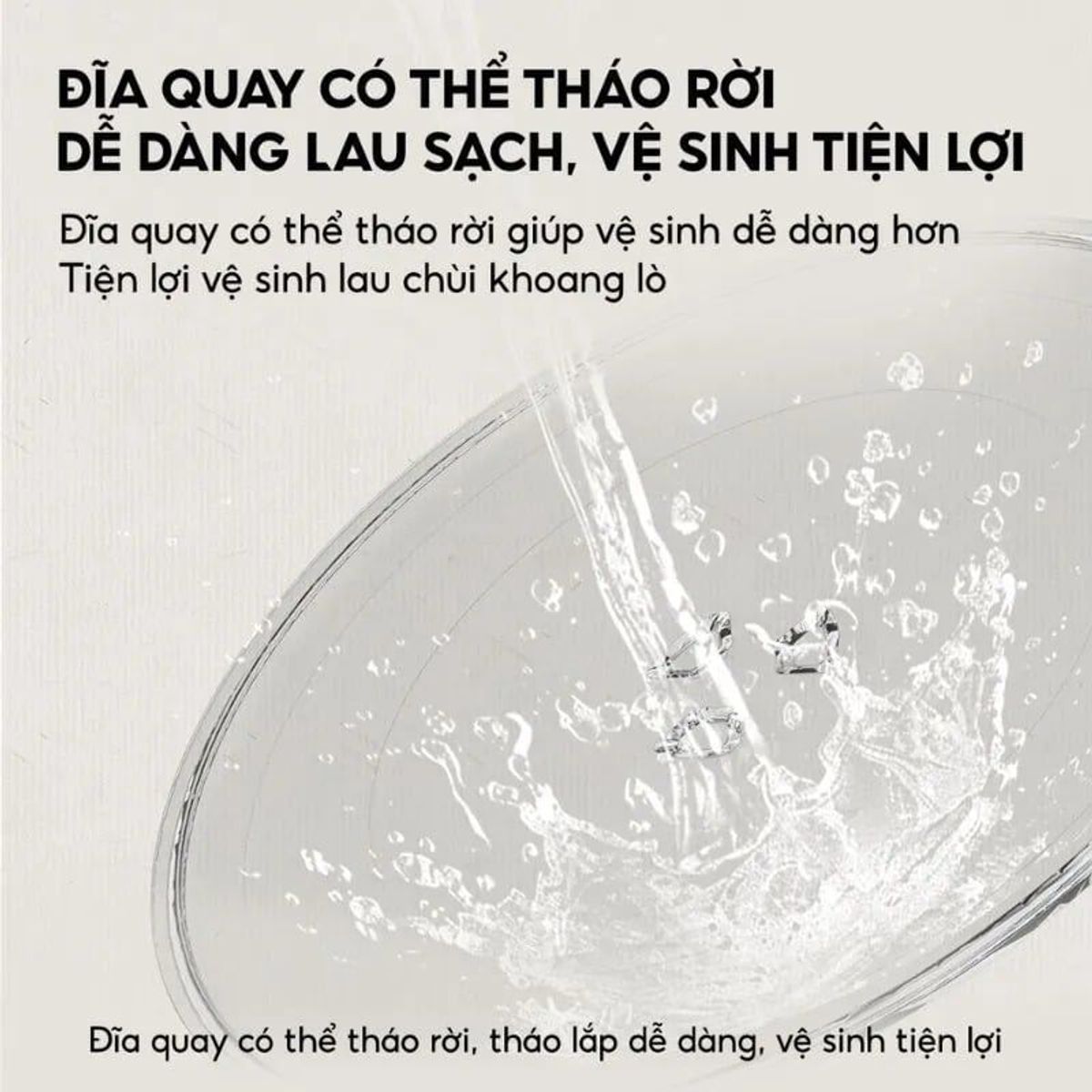 Lớp sơn tĩnh điện phủ toàn bộ khoang trong giúp lò vi sóng AQUA AQS-MWM2001R(W)-VN đảm bảo an toàn khi sử dụng và nâng cao độ bền theo thời gian. Bề mặt trơn nhẵn hạn chế bám dầu mỡ, dễ lau chùi chỉ sau vài thao tác. Đặc biệt, đĩa xoay được thiết kế tháo rời linh hoạt, giúp người dùng dễ dàng vệ sinh toàn bộ bên trong khoang lò cũng như đĩa xoay một cách tiện lợi. Cấu trúc này không chỉ hỗ trợ làm sạch nhanh chóng mà còn duy trì độ mới và vệ sinh cho thiết bị trong suốt quá trình sử dụng.