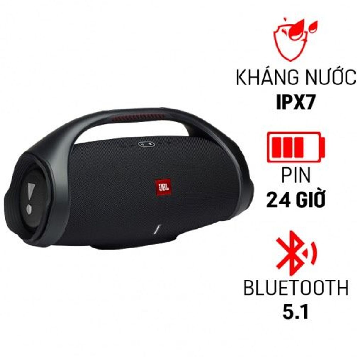 Nguồn cấp điện: 20V / 4A Chống nước: IPX7 Bluetooth version Bluetooth 5.1 Pin: Lithium-ion Ploymer (74Wh) Kích thước (H x W x D): 25,45 cm x 49,5 cm x 19,55cm Trọng lượng: 5,5 kg Đánh giá chi tiết loa di động chống nước JBL Boombox 2Với chất âm trầm mạnh mẽ cùng thiết kế mới mang tính biểu tượng, loa di động chống nước JBL Boombox 2 mang đến sự lựa chọn tuyệt vời khi có nhu cầu sở hữu một chiếc loa bluetooth thời trang, di động công suất lớn với kết nối đa dạng.