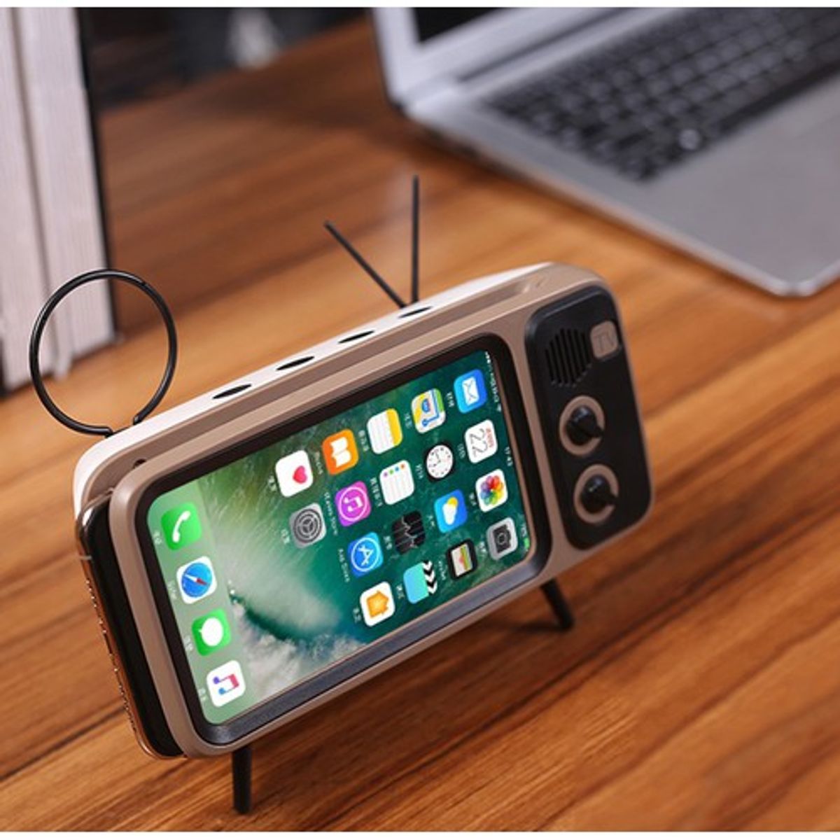 Bạn muốn tìm một chiếc loa Bluetooth để có thể nghe nhạc, xem phim đã hơn thì đừng bỏ qua chiếc loa bluetooth kiêm giá đỡ điện thoại hình tivi cổ điển siêu độc đáo này nhé. Loa Bluetooth V4.2 ổn định, âm thanh sống động với phạm vi kết nối tối đa là 10m. Thiết kế hình dáng tivi cổ điển độc đáo nên đây không chỉ là món
