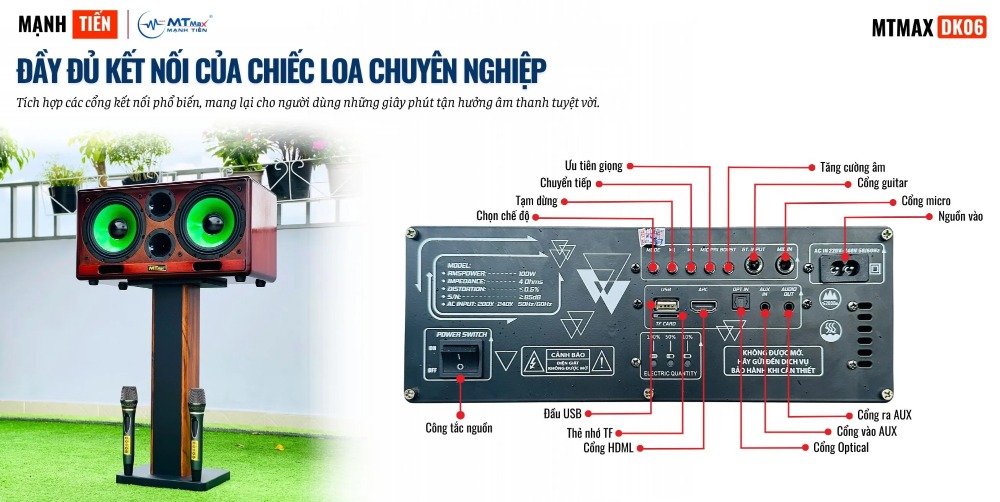 - Loa MTMAX DK06 có mức công suất ổn định 150W và tối đa đến 270W kết hợp với hệ thống loa cao cấp, mang đến chất âm chi tiết và chân thực.