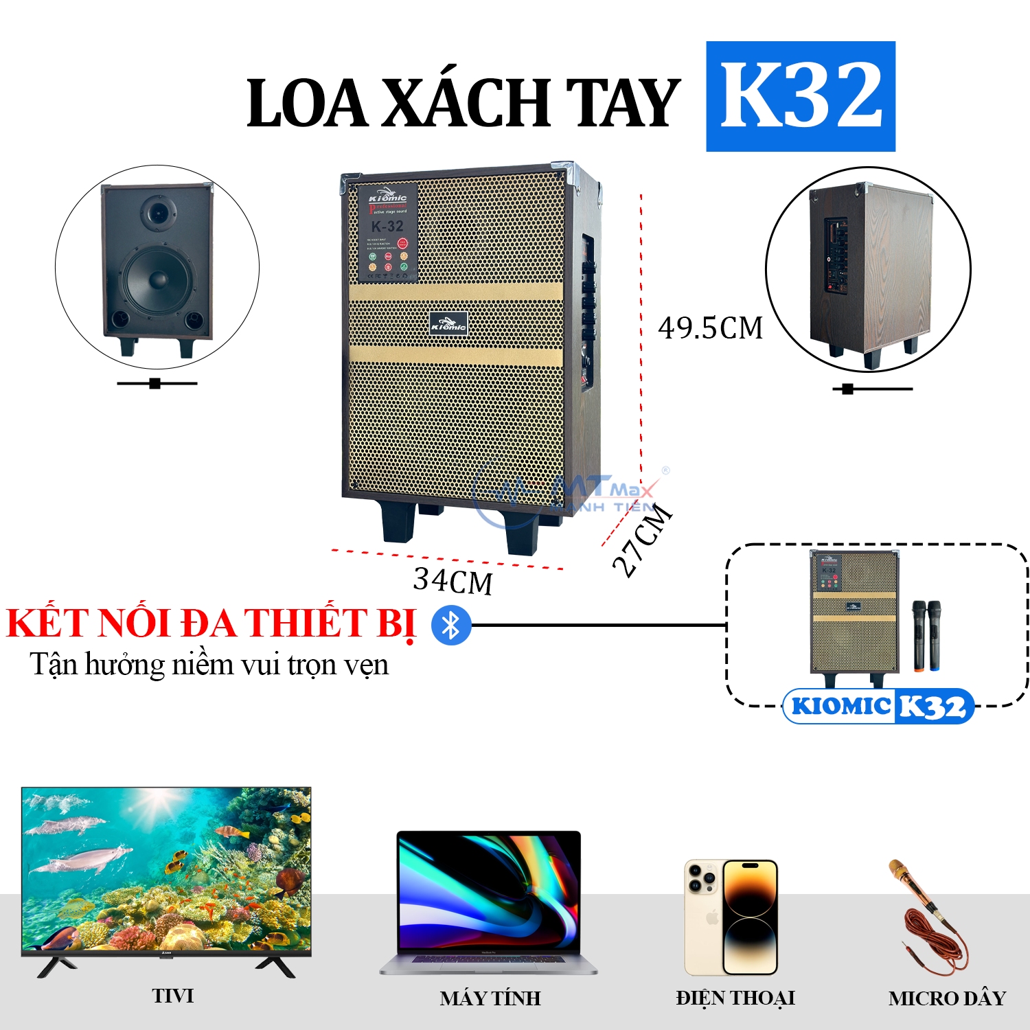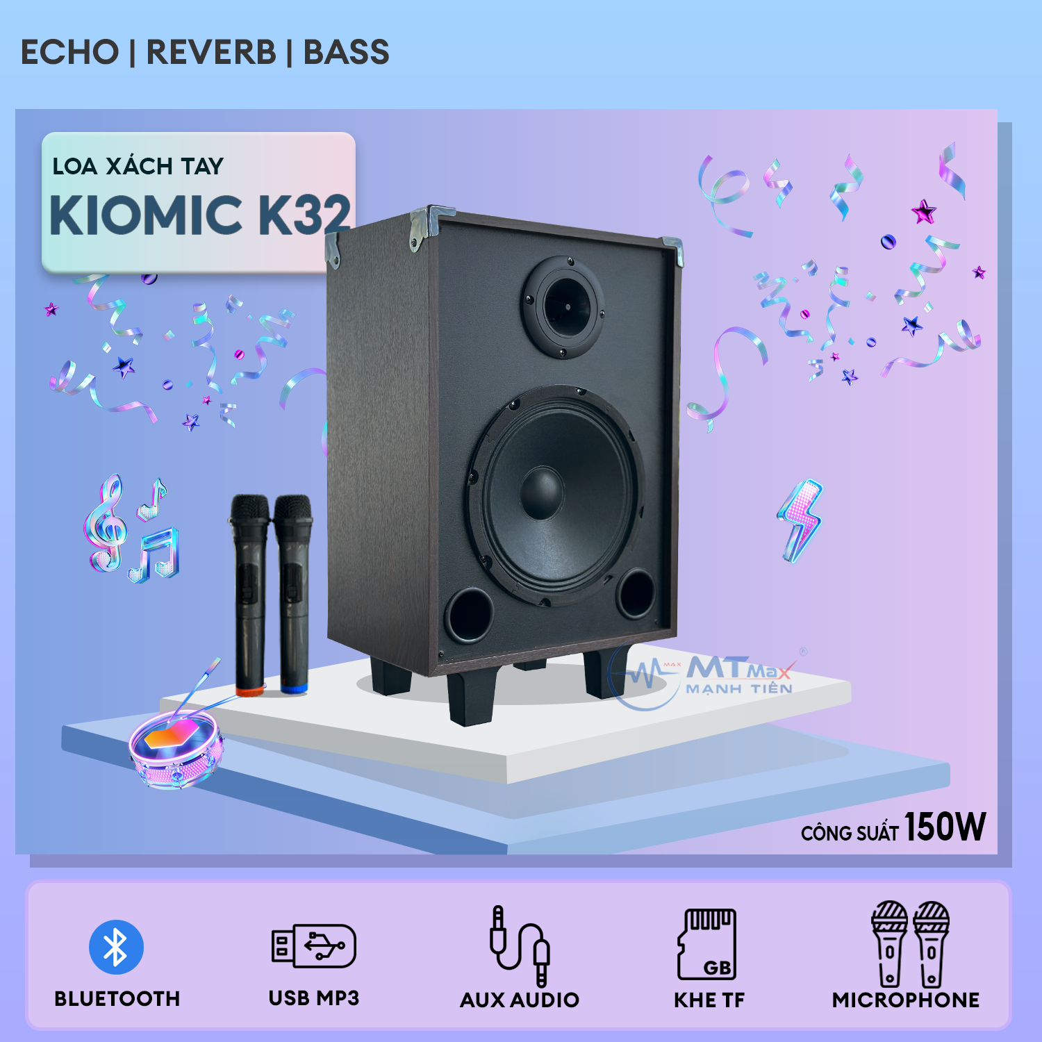 Loa Karaoke Kiomic K32 - Loa Xách Tay Bluetooth Cao Cấp Giá Rẻ Bass 20Cm Chất Âm Mạnh Mẽ Uy Lực Tặng Kèm 2 Micro Không Dây Bảo Hành 6 Tháng