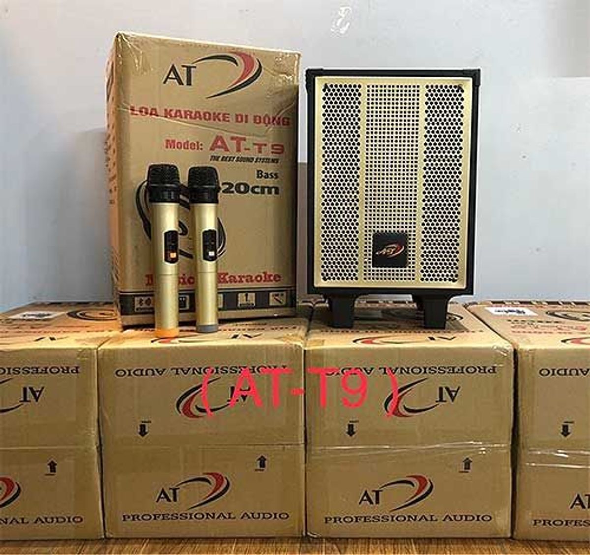 Loa kéo AT T9, nhỏ gọn, nặng chỉ có 5kg, lựa chọn tuyệt vời cho những chuyến đi xa, loa có 2 mic nên có thể: chơi nhạc- karaoke, trong có bình accu...