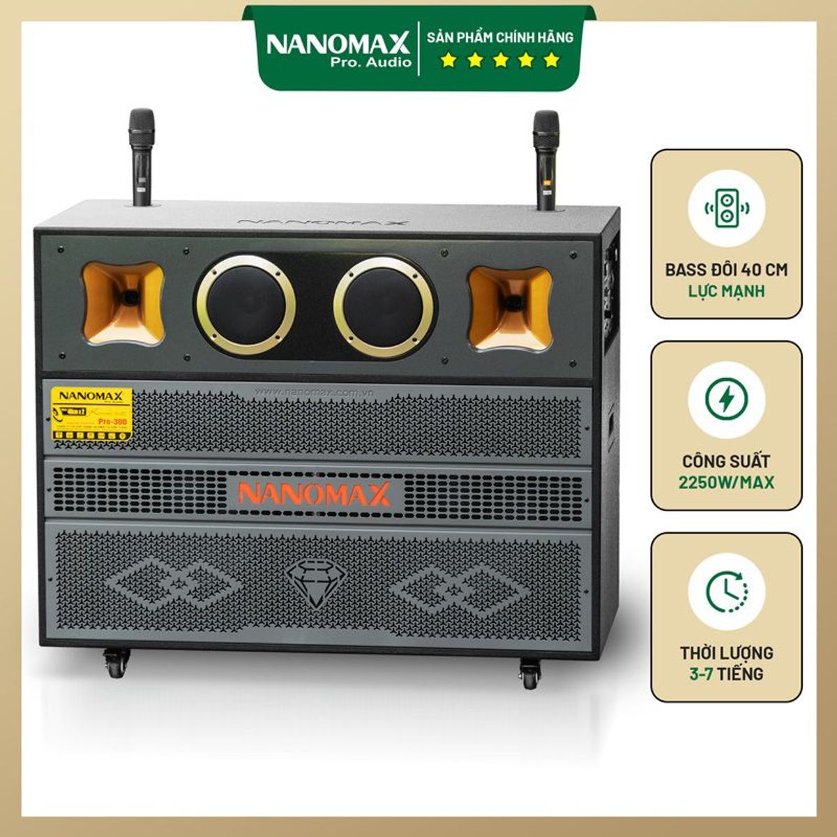 Loa Kéo Bình & Điện Nanomax Pro-300 Bass Đôi 40cm 2250w giá sỉ - giá bán buôn