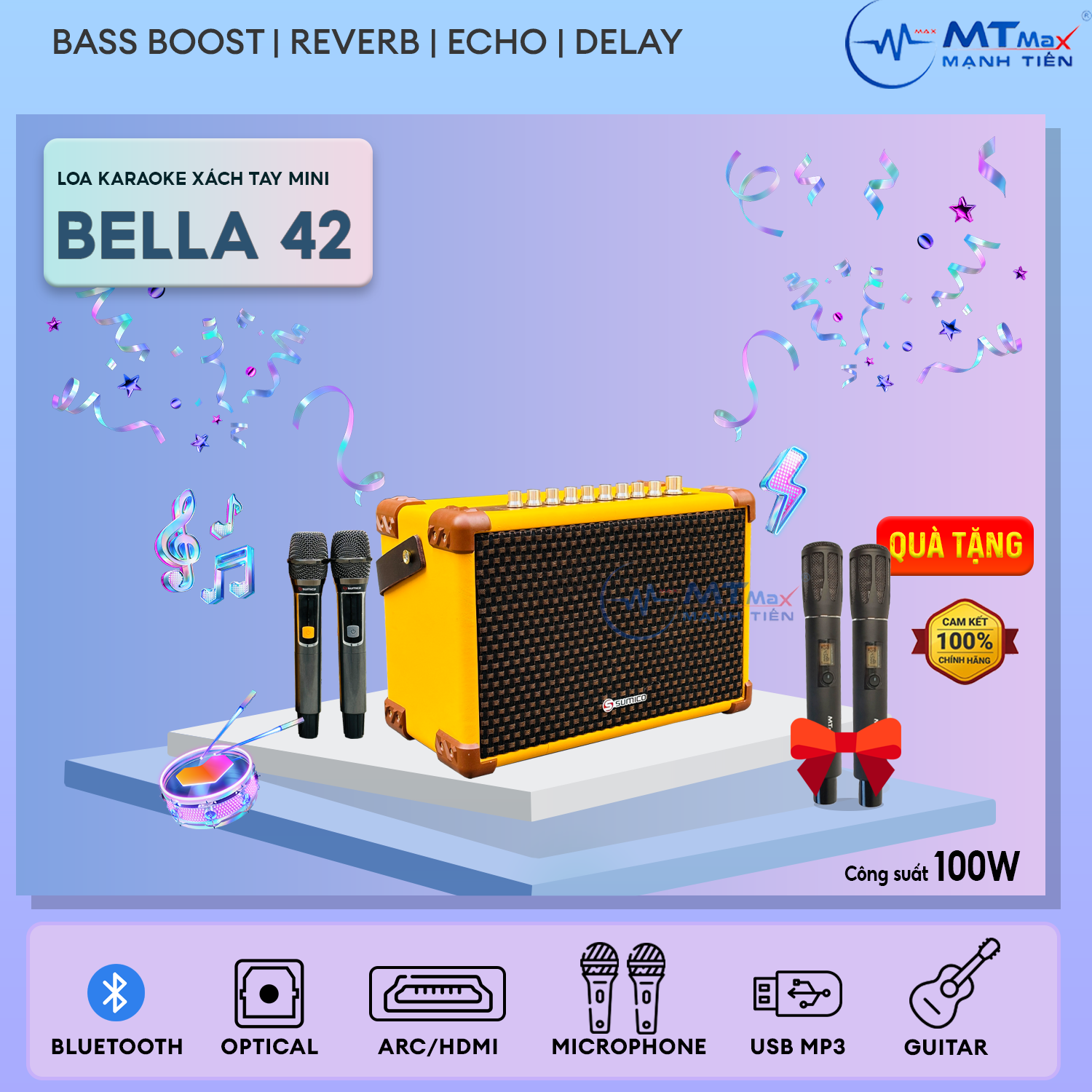 Loa Xách Tay Karaoke Sumico Bella 42 - Âm Thanh Vượt Trội, Thiết Kế Trẻ Trung, Tặng Micro Không Dây Q03 Chính Hãng, Bảo Hành 12 Tháng.