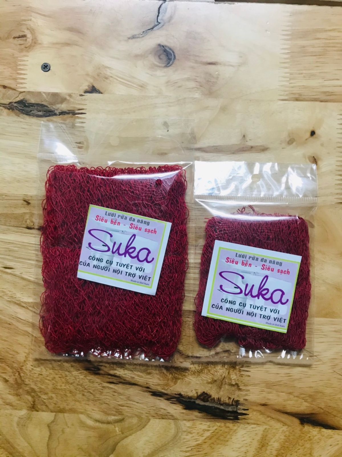 Lưới rửa chén màu đỏ : miếng to và dày cầm nắm vừa tay, tiện lợi cho việc rửa chén, nồi....