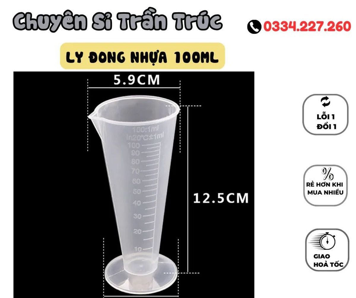 Với ly đong nhựa 100ml có chia vạch, bạn sẽ có một công cụ hữu ích để đo lường và đong các loại chất lỏng một cách dễ dàng và chính xác. Sản phẩm này không chỉ giúp bạn tiết kiệm thời gian mà còn mang lại sự thuận tiện và hiệu quả cho công việc của bạn.