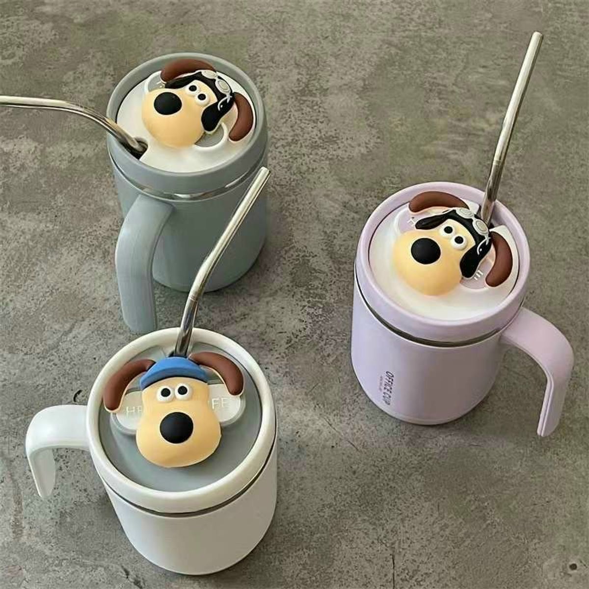 Ly kèm ống hút nắp đầu thú hình chú chó có dung tích lớn dùng để đựng coffe, sữa, thức uống nóng lạnh.