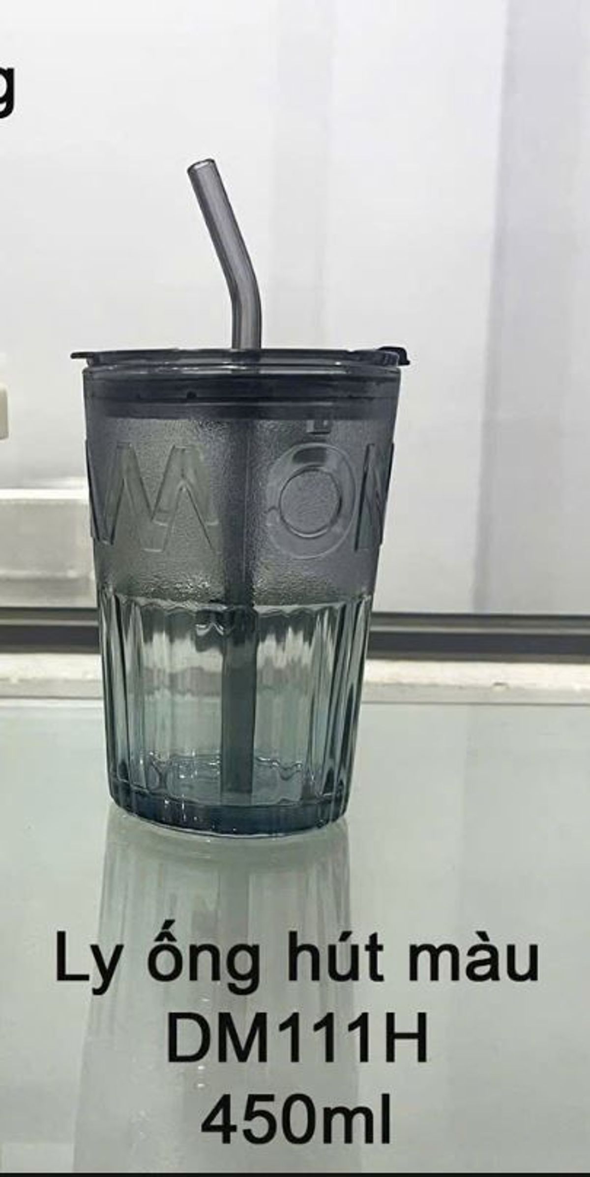 LY THUỶ TINH QUÀ TẶNG 450ML DM111H KÈM ỐNG HÚT