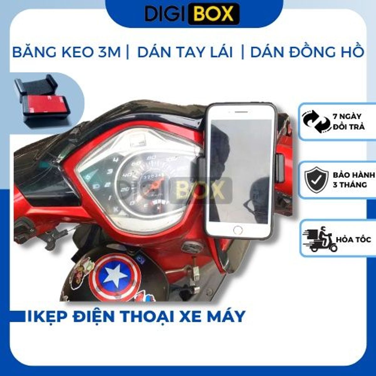 * Chi tiết sản phẩm Kẹp điện thoại dán lên đồng hồ xe máy