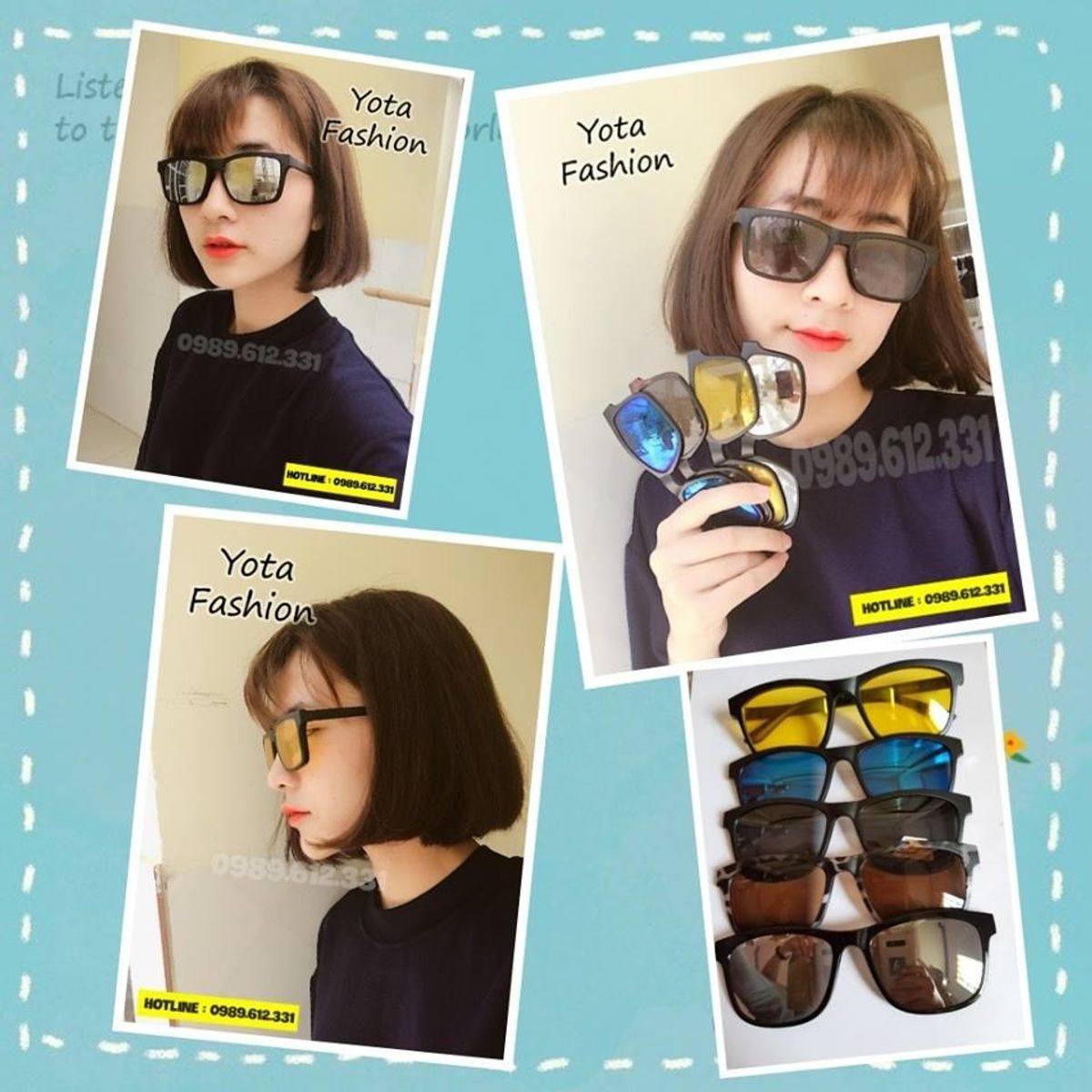 Sản phẩm Là 1 bộ gồm 1 gọng kính trắng và 5 tròng màu rời, có thể tháo rời và lắp vào de dàng, tiện lợi , thời trang 1 bộ Gồm 6 loại màu kính thay đổi: - đen - Tròng phân cưc Polaroid - nâu - đi xuyên đêm - gương xanh - gương bạc - gọng kính trắng có thể thay được kính độ cận viễn loạn