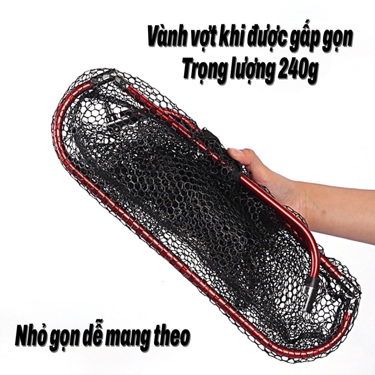 Mặt vợt tam giác gấp gọn tiện lợi khi đi câu cá