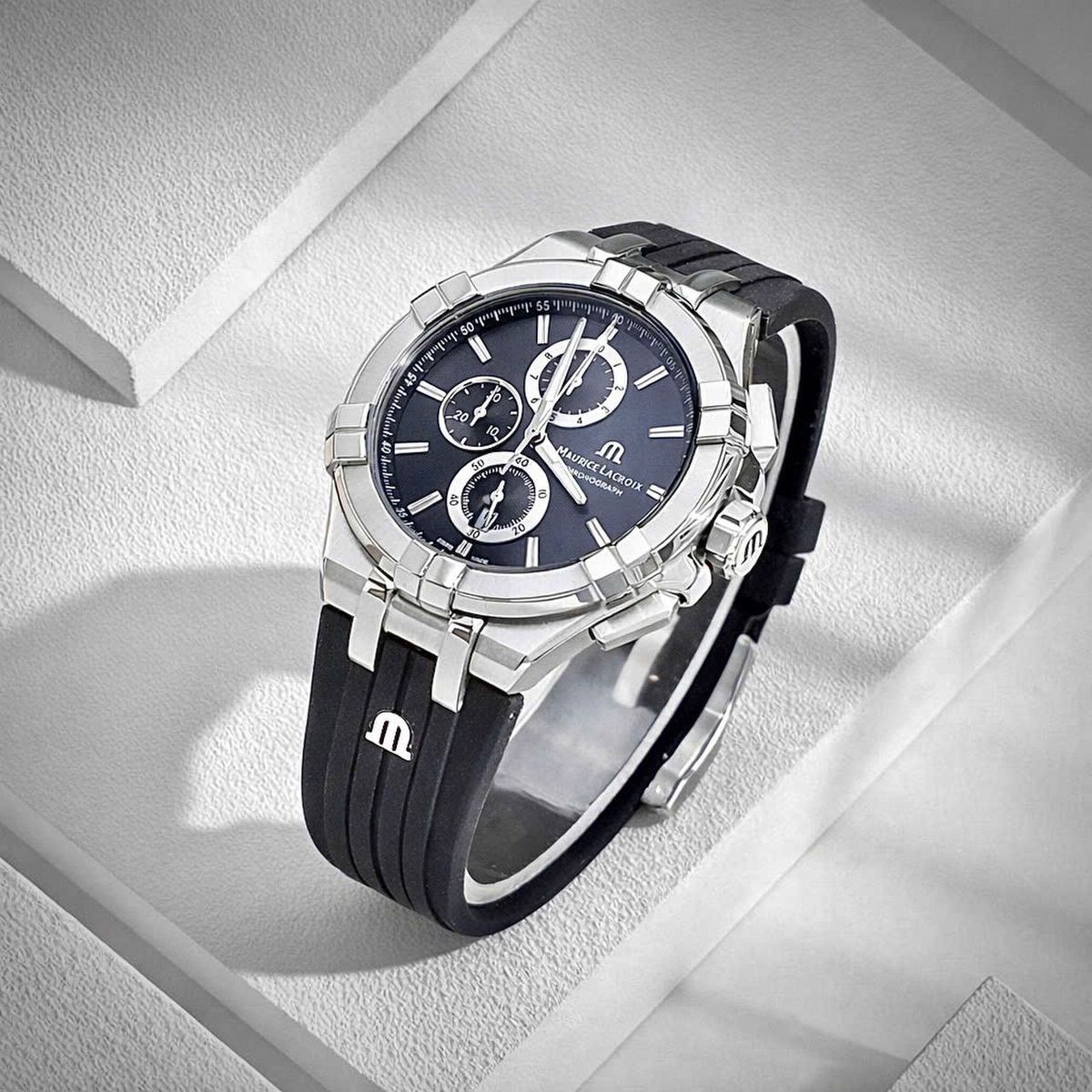 MAURICE LACROIX 𝐀𝐢𝐤𝐨𝐧 𝐂𝐡𝐫𝐨𝐧𝐨𝐠𝐫𝐚𝐩𝐡 𝐐𝐮𝐚𝐫𝐭𝐳 𝐁𝐥𝐚𝐜𝐤 𝐃𝐢𝐚𝐥 𝐌𝐞𝐧'𝐬 𝐖𝐚𝐭𝐜𝐡