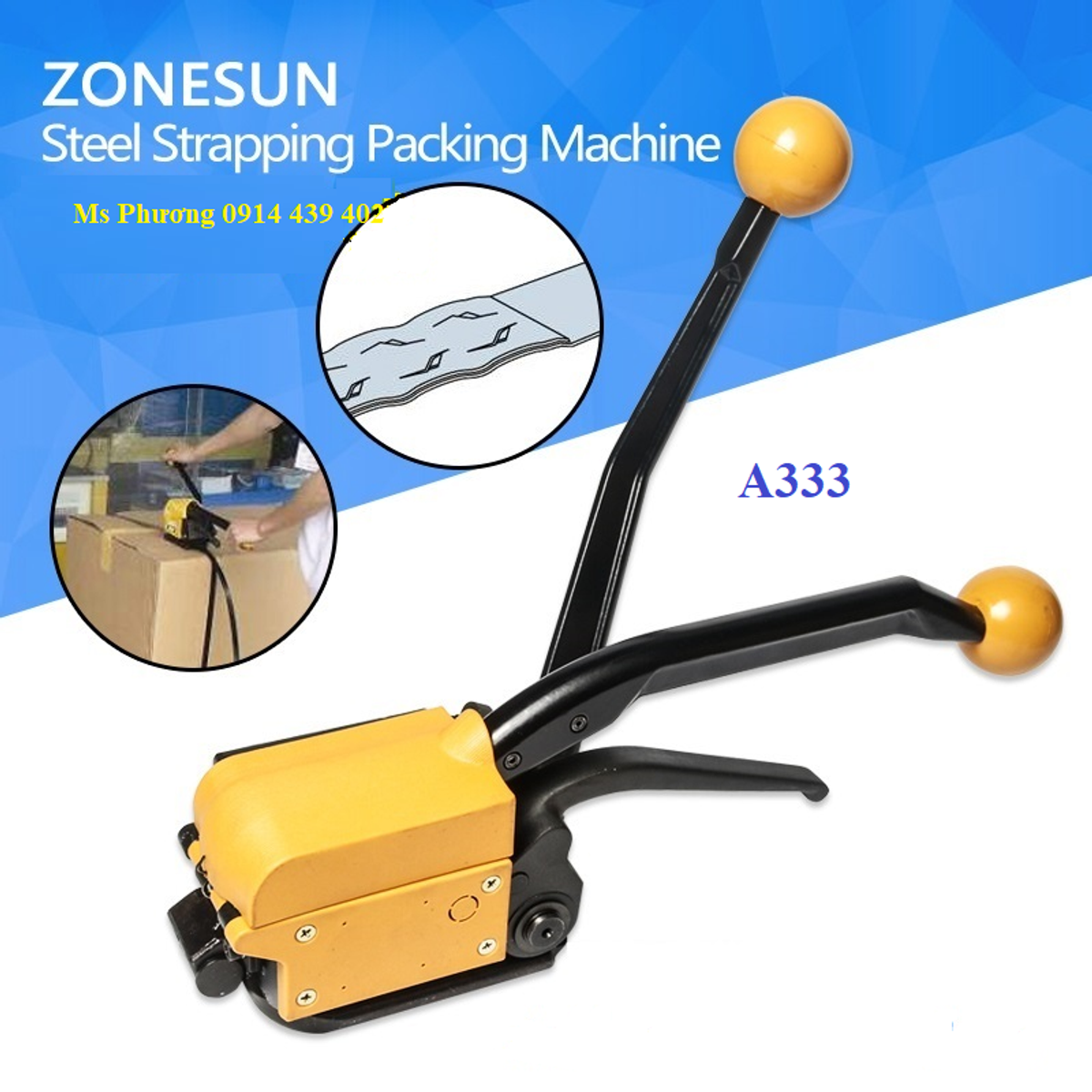 A333 có thể đóng được đai có chất liệu, thép, sắt. Bạn có thể điều chỉnh dây đai linh hoạt, A333 phù hợp sử dụng cho kiện hàng có khối lượng lớn, nặng, bề mặt phẳng có diện tích tiếp xúc lớn.