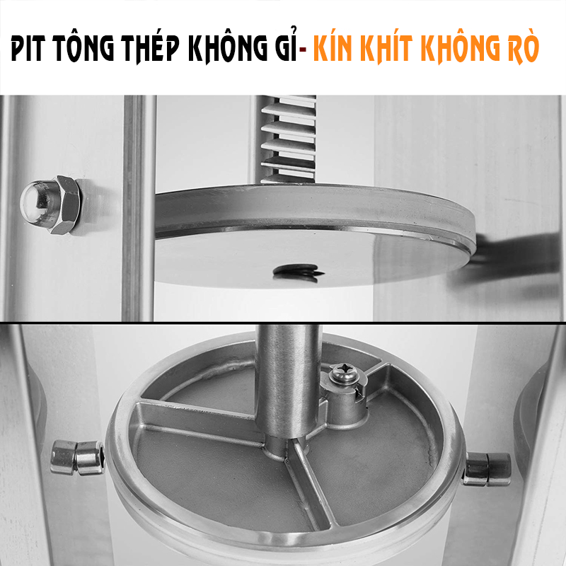 .+ Pít tông: vận động lên xuống tạo lực đẩy thịt vào ống đùn, đùn thành từng cái xúc xích. Trong pít tông được thiết kế 1 van nén khí, giúp cho thành phần xúc xích không có bọt khí dư thừa bên trong.