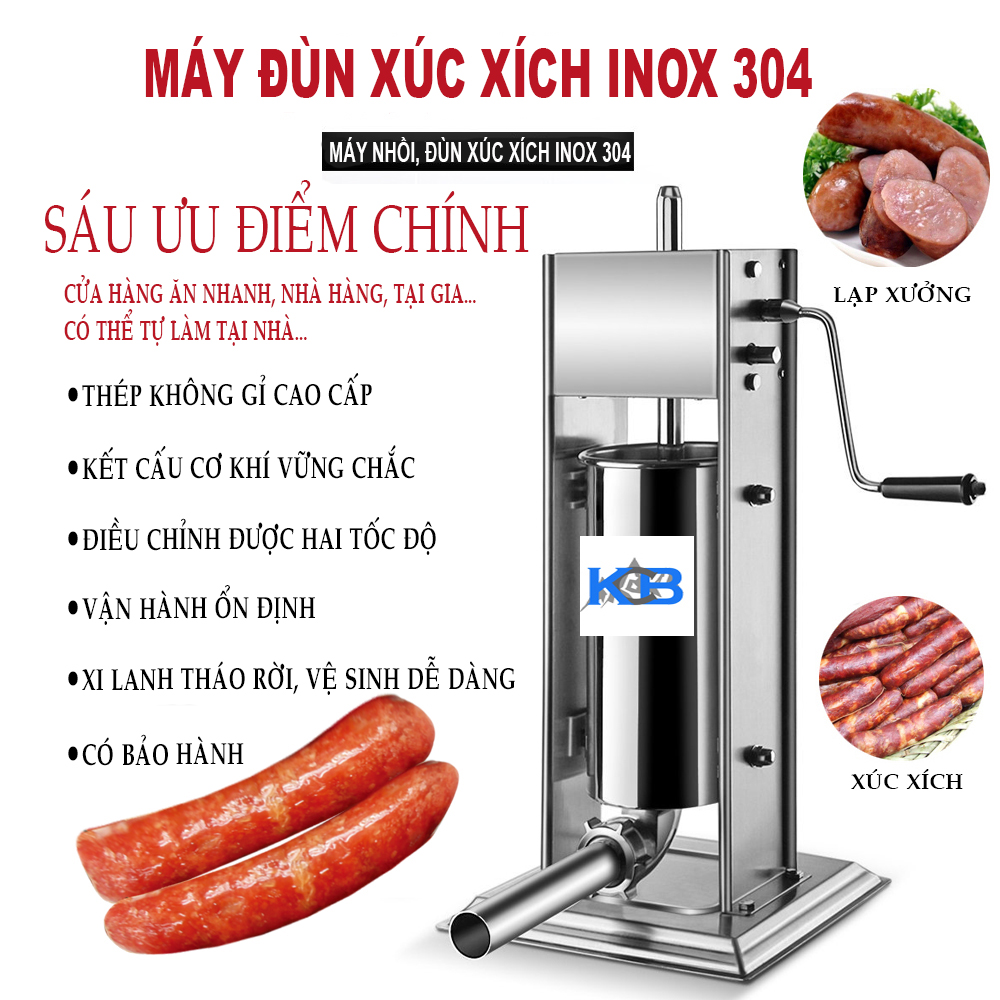 Máy có bộ khung inox chắc chắn với cối đựng thịt làm từ inox 304 cao cấp, an toàn với thực phẩm, dung tích cối 3 lít đựng được từ 1.5 – 2kg thịt làm xúc xích