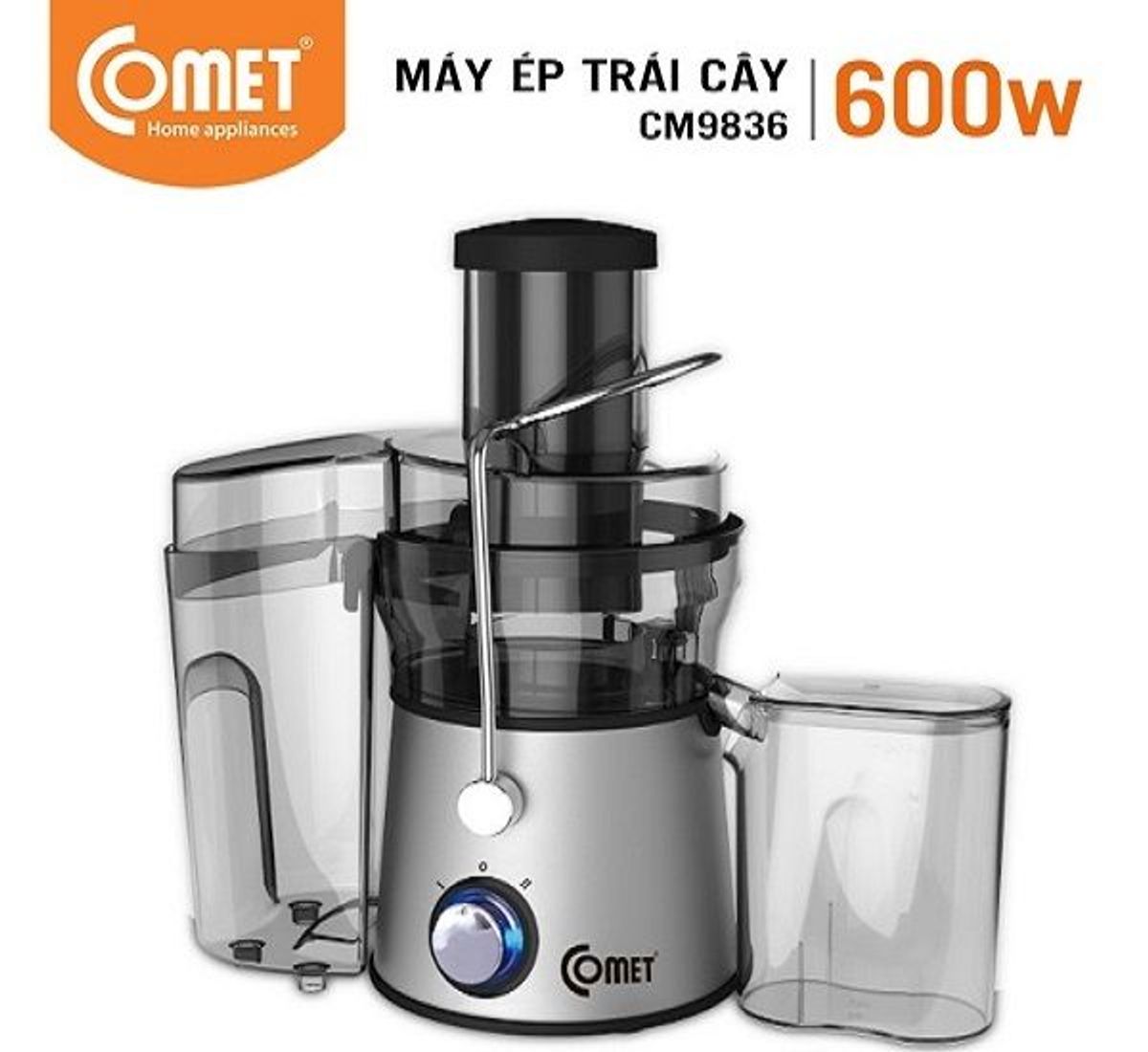 - Máy ép trái cây Comet CM9836 với lưỡi dao không gỉ, giúp bạn xay nhuyễn các loại trái cây nhanh hơn các loại máy xay ép thông thường khác. Ngoài ra, bạn có thể yên tâm khi sử dụng vì sản phẩm còn hỗ trợ khóa an toàn, rất thích hợp với gia đình có trẻ nhỏ..
