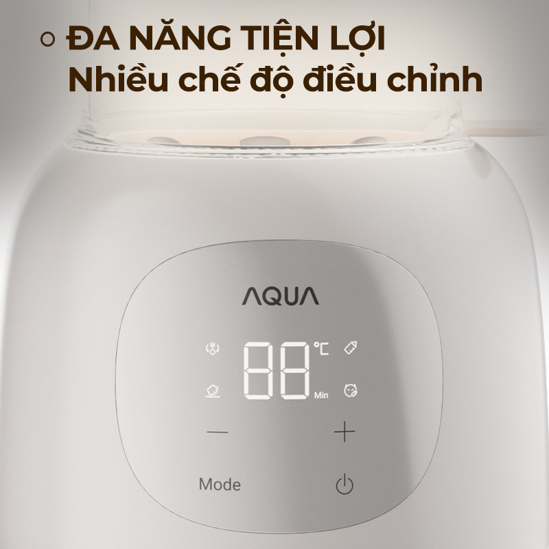 Tích hợp hệ thống kiểm soát nhiệt hiện đại với vi xử lý thông minh và cảm biến chính xác. Máy AQUA sở hữu cơ chế theo dõi nhiệt độ theo thời gian thực giúp người dùng dễ dàng quan sát và điều chỉnh khi cần. Khi đạt đến mức nhiệt đã cài đặt, thiết bị sẽ tự động duy trì ổn định, tránh quá nhiệt hay giảm nhiệt đột ngột. Nhờ đó, chất lượng sữa và dưỡng chất bên trong luôn được bảo toàn. Tính năng này góp phần nâng cao hiệu quả sử dụng và đảm bảo an toàn trong quá trình hâm nóng thực phẩm.