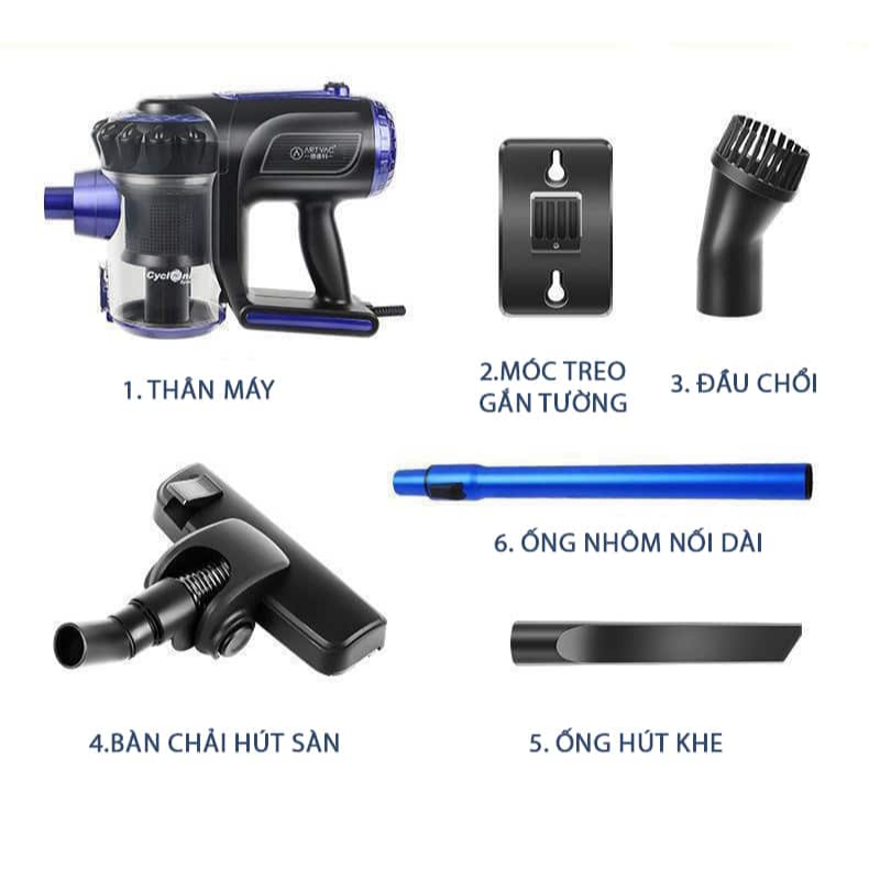 Máy hút bụi cầm tay có dây ARTVAC T12 gồm có: