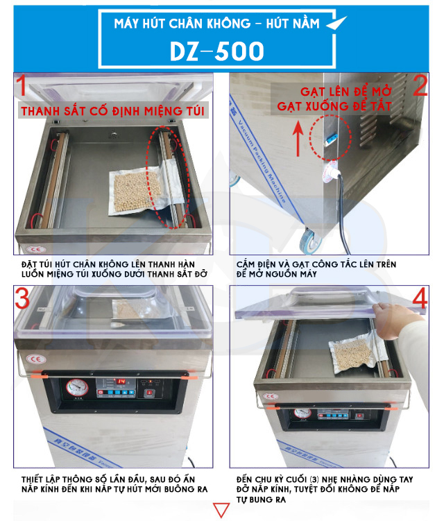 Máy hút chân không công nghiệp DZ500 hút chân không, hàn miệng túi trong thời gian ngắn từ 10-25 giây, năng suất cao, hiệu suất tốt.