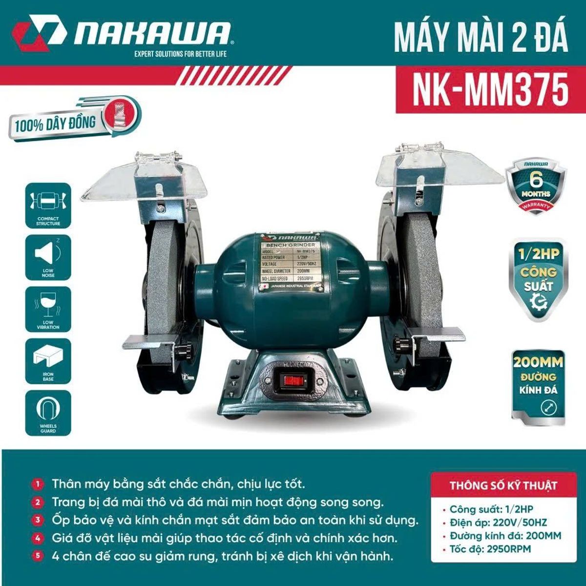 Máy mài 2 đá NAKAWA NK-MM375 là thiết bị không thể thiếu trong các xưởng cơ khí, xưởng sản xuất hoặc các công việc gia công kim loại. Với thiết kế chắc chắn, khả năng vận hành mạnh mẽ và tính linh hoạt cao, sản phẩm giúp mài sắc, đánh bóng và định hình vật liệu một cách nhanh chóng, chính xác và an toàn.