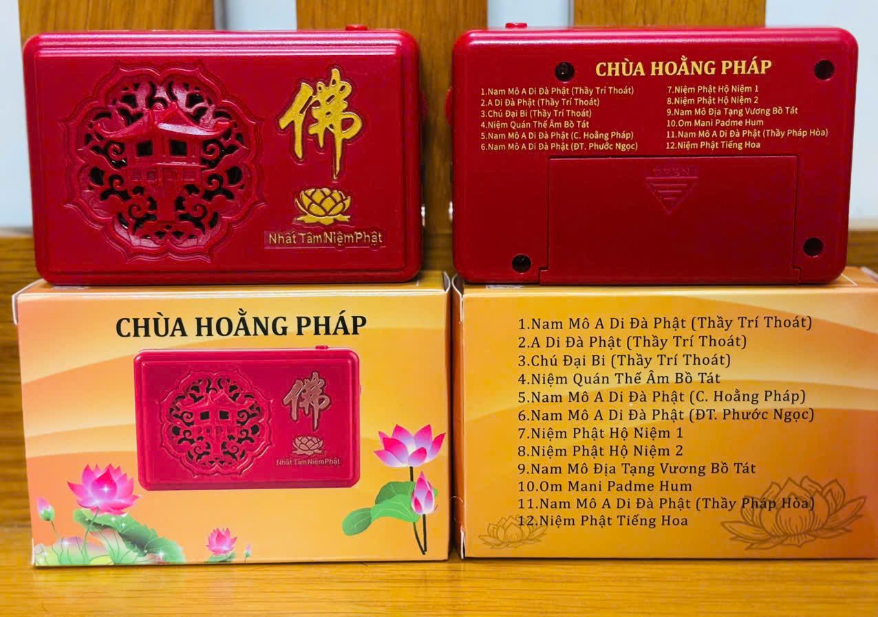 + Máy niệm phật 12 bài hộp vàng được nâng cấp, cải tiếng từ máy 5 bài, đảm bảo chất lượng âm thanh nghe rõ và tốt hơn, giá máy đã bao gồm cục sạc Adaptor.