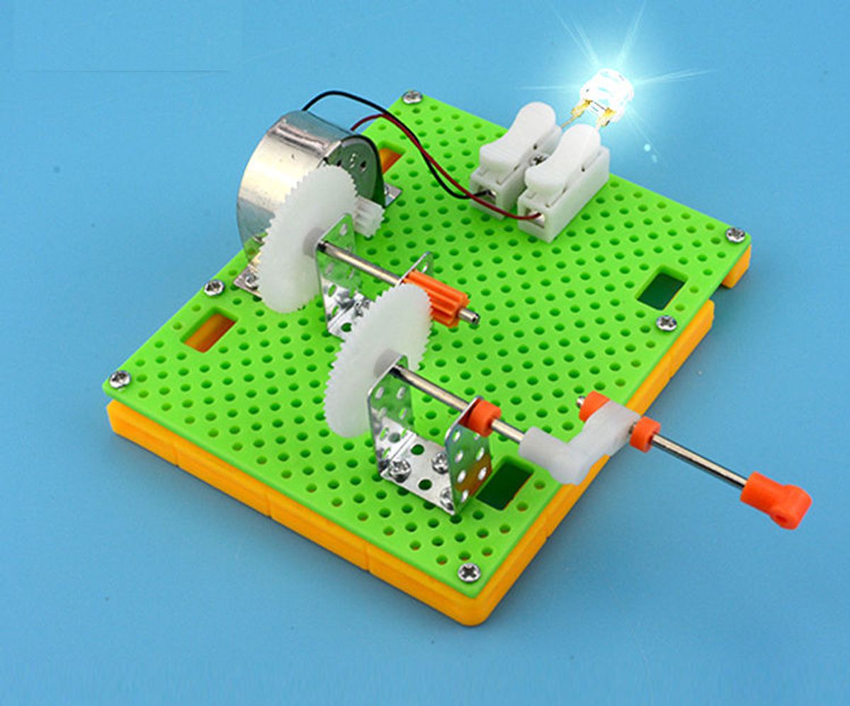 Sản phẩm mô tả cách tạo ra điện: chuyển đổi động năng thành từ trường, từ trường tạo ra hiệu điện thế, tạo ra dòng điện thắp sáng bóng đèn