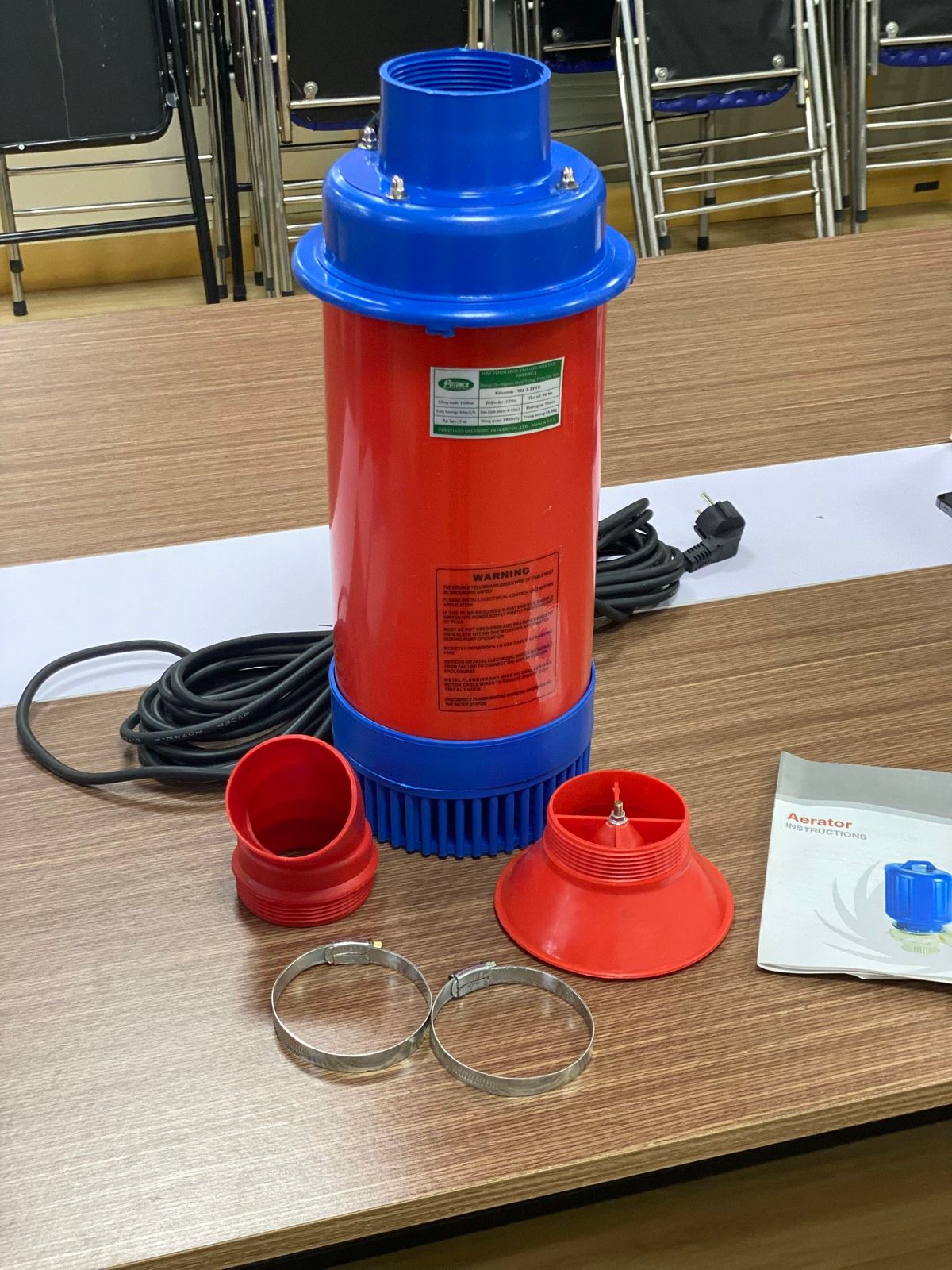 Chức năng lưu chuyển dòng nước, cung cấp thêm oxy hòa tan trong nước theo nhiệt độ môi trường, khử mùi hôi trong nước, làm mát nước vào mùa hè và làm ấm nước vào mùa đông. Ngoài ra, máy có thể được sử dụng để tát ao, với đầu vòi chuyển đổi (được cung cấp cùng với máy) được lắp đặt và sau đó kết nối với các đường ống có thể vận chuyển nước lên đến 100 mét.