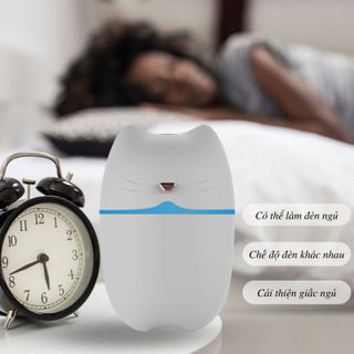 Máy Phun Sương Tạo Ẩm Xông Tình Dầu Xe Hơi Và Phòng Ngủ Hình Mèo Dễ Thương 260ML Đèn Led Đổi Màu Thay Thế Đèn Ngủ
