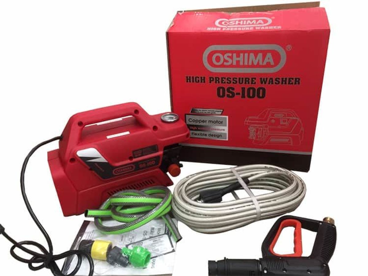 - Oshima OS-100 sở hữu công suất 1.500W cộng với áp lực tối đa 100 bar, nên máy rửa xe Oshima OS 100 có lực phun cực khỏe, cùng với đó là lưu lượng nước 7 lít/phút, nên Oshima OS 100 sẽ làm hài lòng cho bất kì ai.