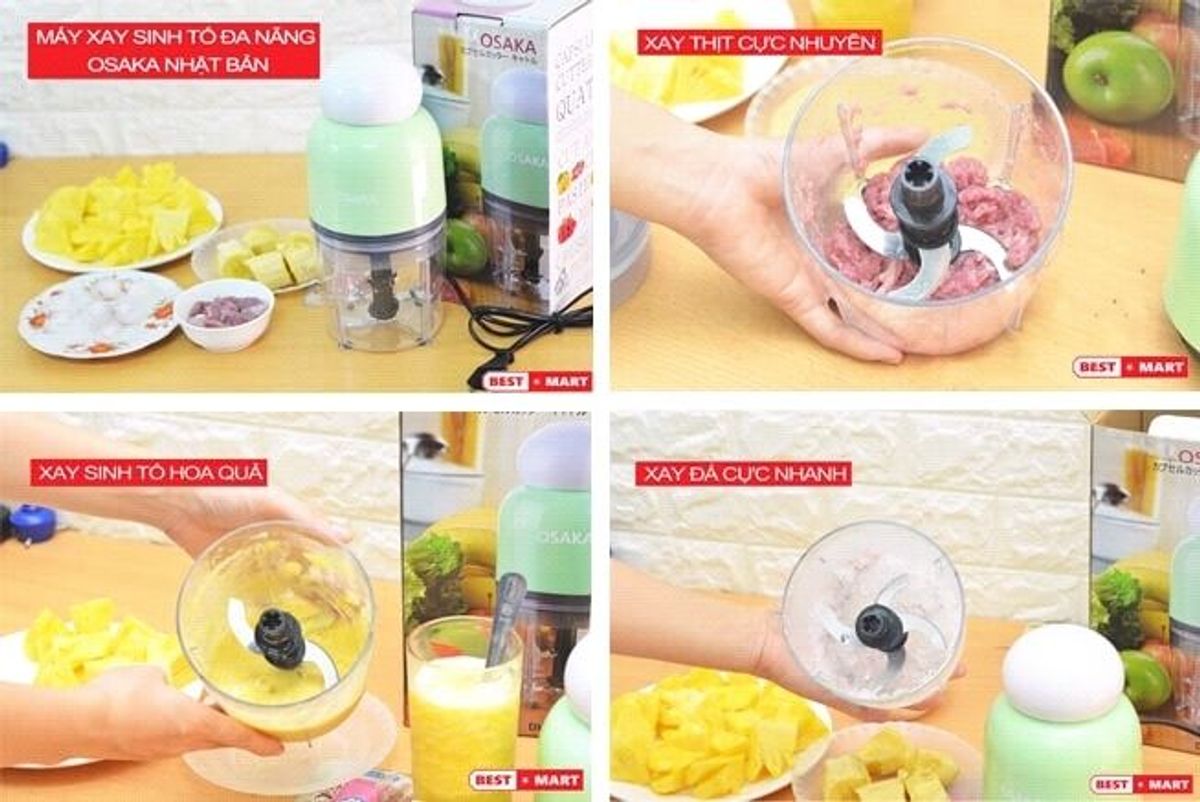 Đây là phiên bản thứ 2 của dòng sản phẩm này. Về độ "trâu bò" của nó thì khỏi nói rồi. Nó có thể xay được cả đá viên, thịt, cá cua các loại... Xay sinh tố thì quá đơn giản. Cũng có thể dùng máy để xay thô các loại hạt ngũ cốc: đậu phộng, đậu đỏ, hạt điều...Bản mới có thiết kế đẹp hơn, với tên OSAKA. Màu sắc rất bắt mắt. Phần cối xay được cải tiến để tháo lắp dễ dàng hơn. Có thang chia dung tích ml ngay trên thân cối xay. Chất liệu nhựa hơn hẳn. Cối xay trong suốt, có thể quan sát bên trong dễ dàng. Phần núm công tắc thiết kế bo tròn, dễ thao tác, và cũng đẹp hơn bản cũ.Với máy xay này, các mẹ dễ dàng làm những ly trái cây với đá xay ngon tuyệt trong mùa nóng. Cũng có thể sử dụng để xay đồ ăn dặm cho bé làm kem trái cây làm muối đậu phộng mix các loại bơ sữa phô mai trộn bột làm bánh...