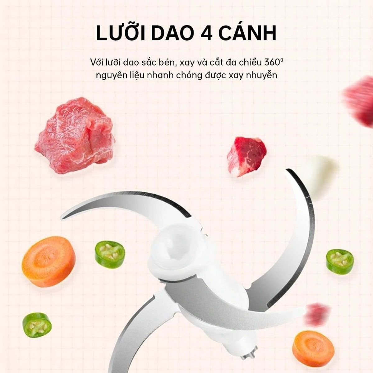 Máy xay thịt AQUA tích hợp lưỡi dao 2 tầng 4 cánh làm từ chất liệu an toàn cho thực phẩm, có độ bền cao và khả năng sắc bén vượt trội. Sở hữu lưỡi dao xoay đa chiều 360° giúp nguyên liệu được cắt, đảo và xay nhuyễn đồng đều trong thời gian ngắn, mang lại hiệu quả chế biến nhanh chóng và tiết kiệm công sức cho người dùng.