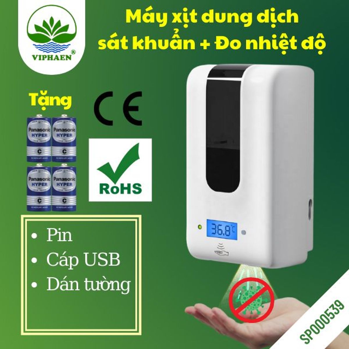 Cơ chế hoạt động: Xịt dung dịch bằng Cảm ứng tư động, đo thân nhiệt