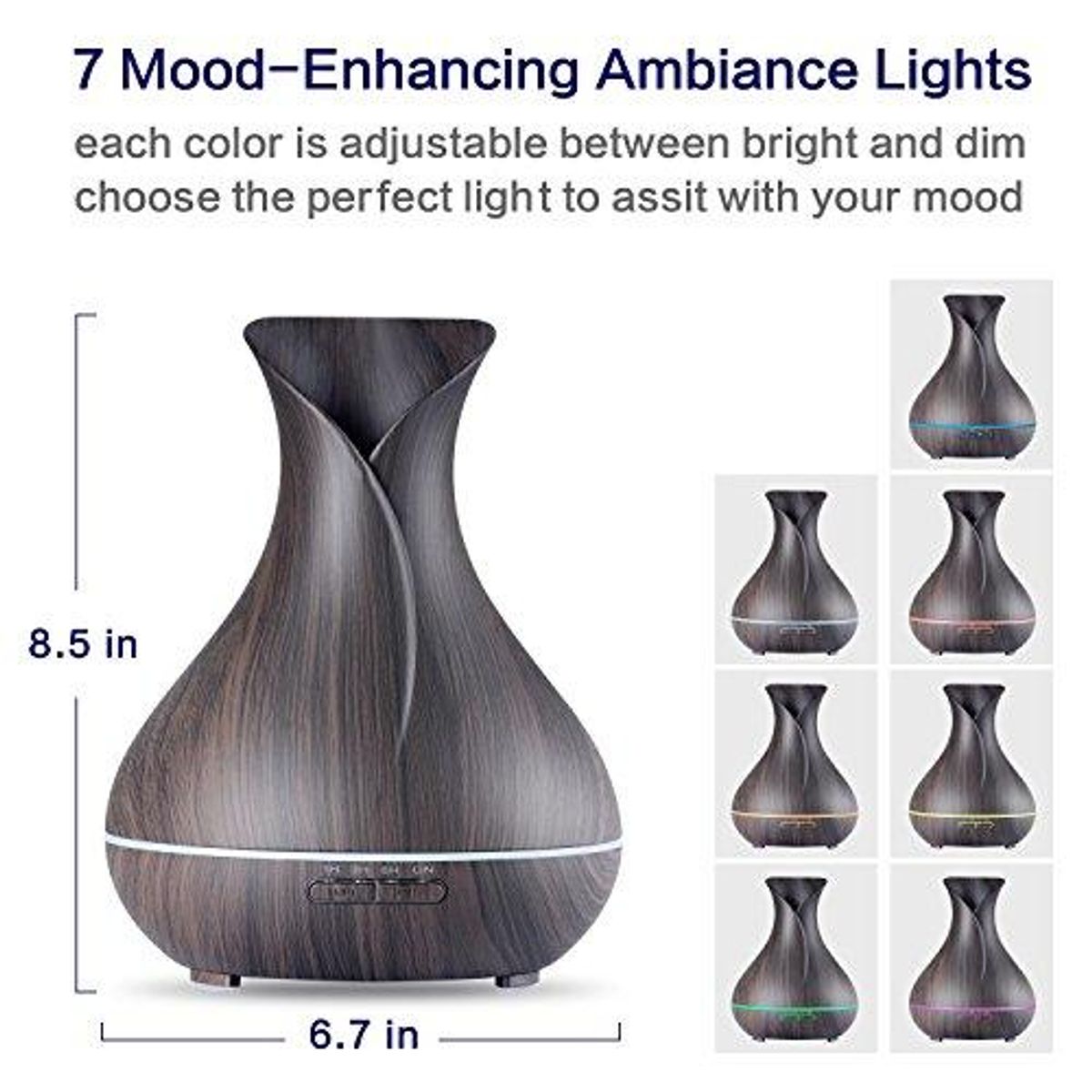 THÔNG SỐ KỸ THUẬT: - Màu sắc: Vân gỗ sáng và Vân gỗ tối - Kích thước : 170 x 216mm - Dung tích: 550ml - Công xuất: 14W - Diện tích khuếch tán: không gian 21-50㎡ - Thời gian phun: liên tục 8-10 tiếng - Điện áp đầu vào: AC100-240V - Điện áp đầu ra: DC24V 0.65A Máy khuếch tán tinh dầu hoa Tulip được sử dụng công nghệ sóng siêu âm không tạo nhiệt vì thế đặc tính của tinh dầu được giữ nguyên, giúp tinh dầu phát huy được tối đa công dụng. Khả năng khuếch tán nhanh chóng. Chất liệu nhựa PP/ABS cao cấp không bị tinh dầu bào mòn. Tiết kiệm điện năng và tinh dầu. Chức năng hẹn giờ 1h/3h/6h hoặc liên tục khi hết nước hệ thống sẽ tự tắt bạn không phải bận tâm khi đang làm việc hay làm gián đoạn giấc ngủ của bạn. Máy có thể dùng thay thế cho đèn ngủ với hệ thống đèn led 7 màu cho bạn nhiều lựa chọn hơn với những màu mình yêu thích. Hướng dẫn sử dụng máy xông tinh dầu hoa Tulip. Điều khiển trực tiếp trên thân máy: Light (chế độ đèn) Nhấn lần 1: Mở đèn LED hệ thống sẽ tự động thay đổi màu đèn. Nhấn lần 2: Cố định màu đèn. Nhấn lần 3: Để chọn chế độ đèn mờ hoặc sáng. Mist (chế độ phun sương) Nhấn lần 1: Để phun sương liên lục Nhấn lần 2: Hẹn giờ sau 1 giờ tắt Nhấn lần 3: Hẹn giờ sau 3 giờ tắt Nhấn lần 4: Hẹn giờ sau 6 giờ tắt Điều khiển bằng remote: Với thiết kế đơn giản dễ sử dụng cho người lớn tuổi và trẻ em. Khoảng cách điều khiển 6m. Một số lưu ý khi sử dụng: Không cho nước nóng vào khay máy phun, tránh làm chảy nhựa khay chứa. Không mở máy khi bình chứa đã hết nước. Không đổ nước quá mức quy định. Thường xuyên vệ sinh máy trước và sau khi sử dụng.