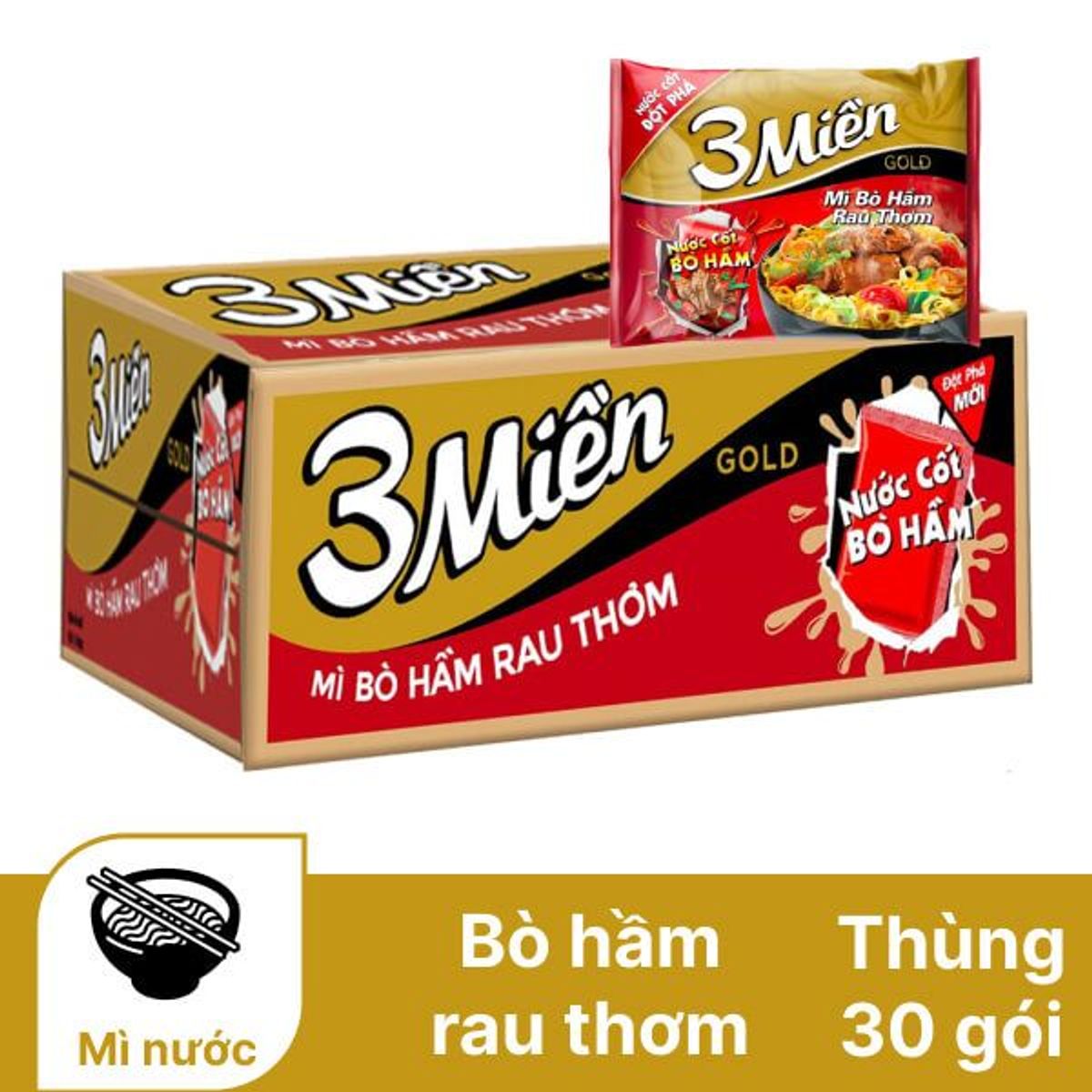 Với sợi mì dai ngon hòa quyện cùng nước súp đậm đà, hương vị thanh đạm mang lại những trải nghiệm thú vị. Gói gia vị mì 3 Miền đậm đà có dầu thực vật, muối, đường, bột thịt bò, bột hành, bột ớt, hành lá sấy, cà rốt sấy, bắp sấy.