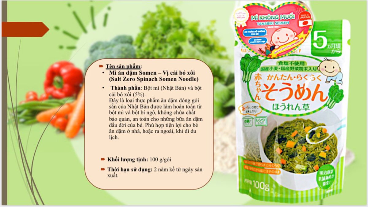 Được làm từ bột mì tươi kết hợp với lúa mạch, rau cải bó xôi, cung cấp chất xơ, vitamin và khoáng chất giúp bé dễ hấp thụ, tiêu hóa tốt. Mẹ có thể nấu mì somen vào bữa sáng hay bữa xế cho bé ăn để thay đổi khẩu vị.