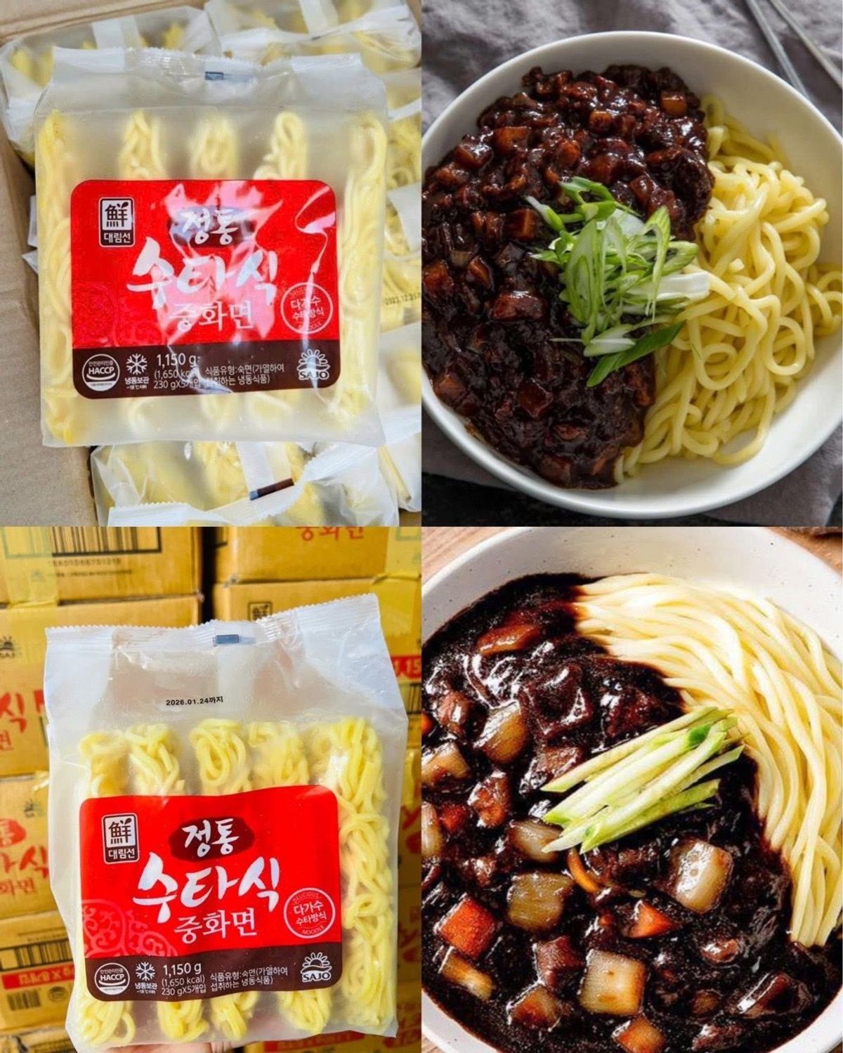 • Đây là công dụng phổ biến và quan trọng nhất. Mì sợi tươi màu vàng, dai và có độ dày nhất định này chính là loại mì truyền thống dùng để trộn với sốt tương đen Jjajang (như hai hình ảnh bên phải minh họa).