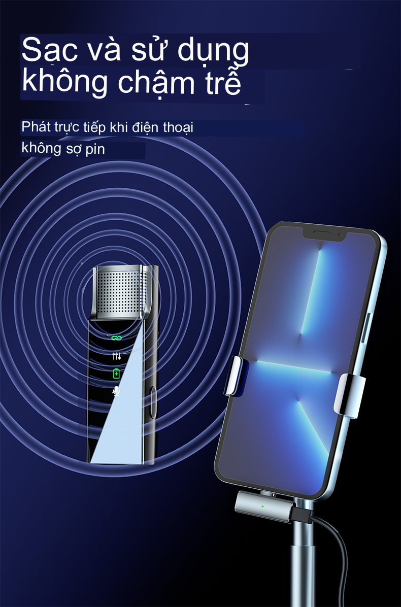 Đầu thu có thiết kế thêm cổng sạc giúp vừa dùng mic vừa sạc mà ko lo điện thoại hết pin