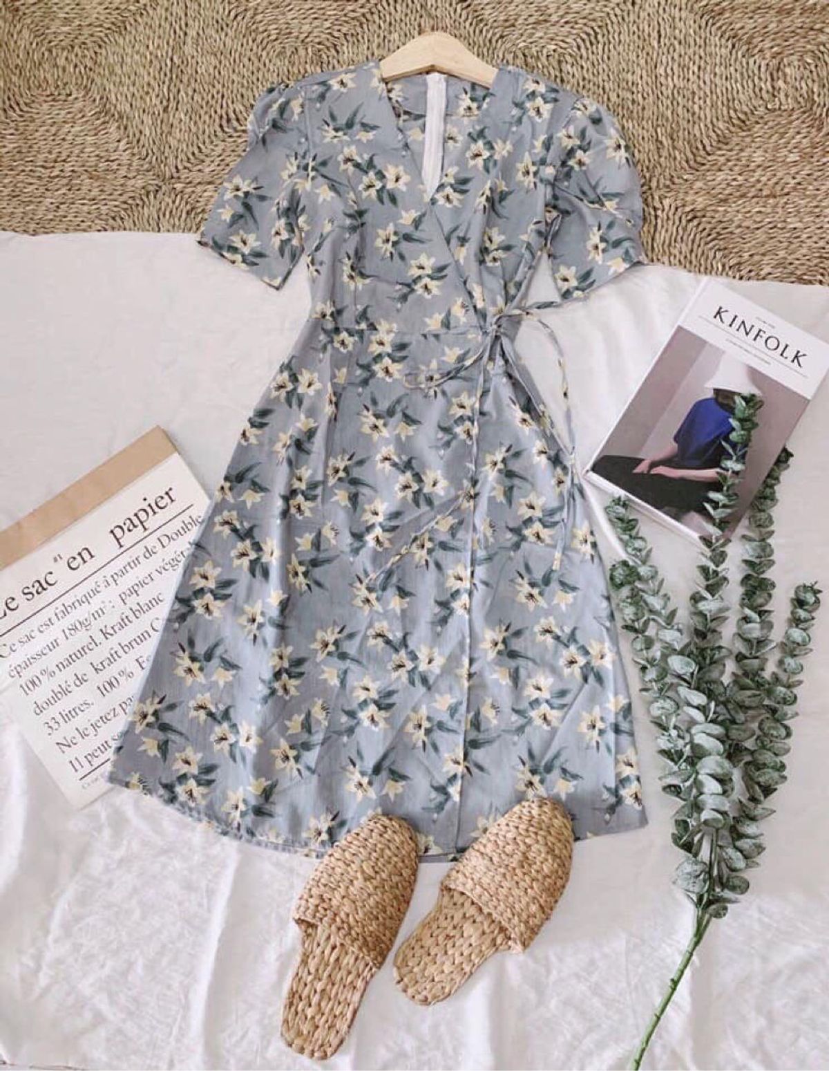 Đầm hoa xanh kiểu dáng đơn giản nhưng vô cùng xinh xắn, màu sắc nhã nhặn thích hợp mặc đi làm, đi chơi, đi tiệc nhaaaa