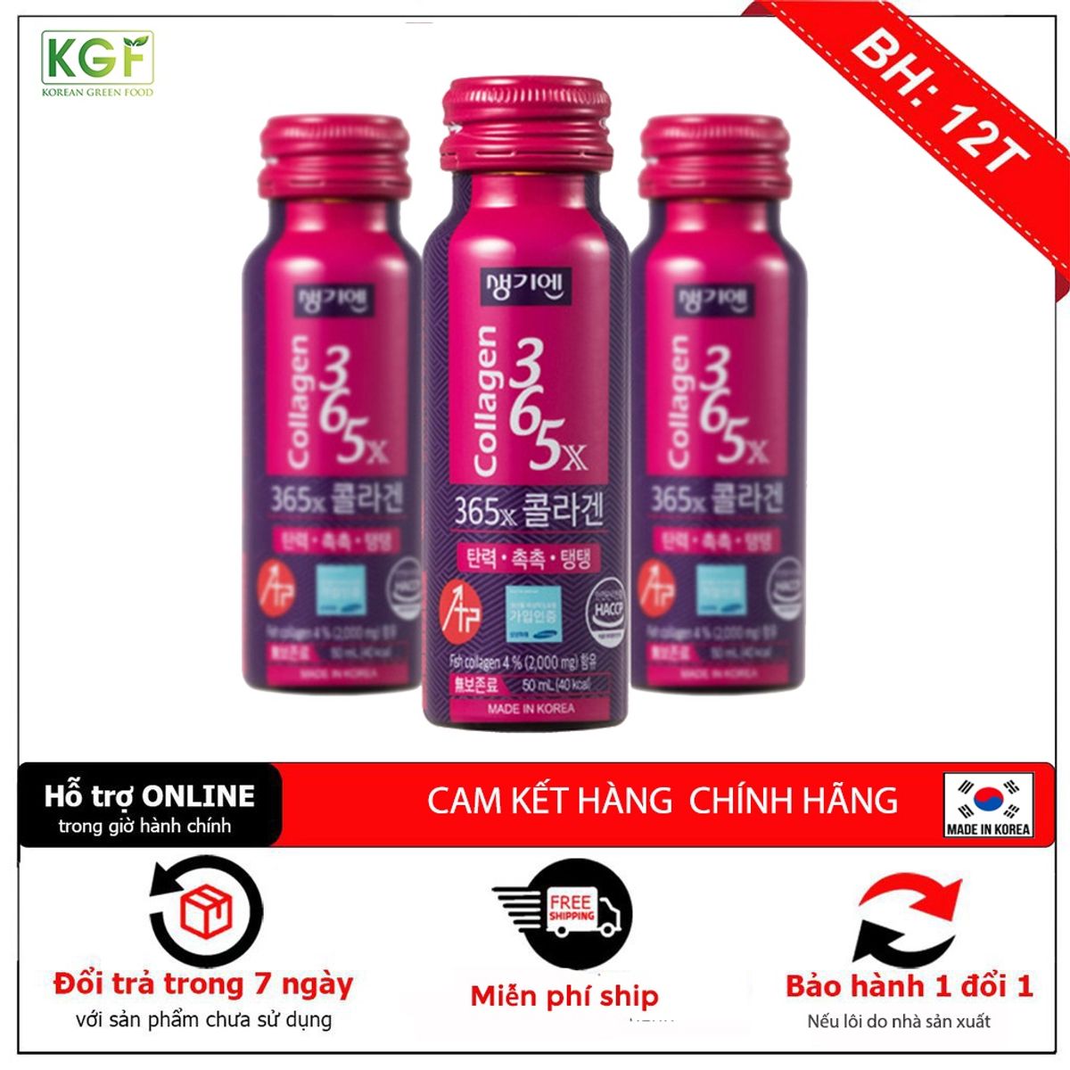 Collagen 365X là dòng sản phẩm được ưa chuộng nhất tại Hàn Quốc. Nguồn collagen thuỷ phân từ da và vảy cá biển đảm bảo độ an toàn và tinh khiết cao nhất. Collagen dạng nước giúp thẩm thấu dễ dàng vào cơ thể. Collagen 365X mát, không gây nóng và tăng cân khi sử dụng. Hàm lượng collagen đạt chuẩn 2.000mg phù hợp với nhu cầu bổ sung collagen hàng ngày, tránh tình trạng nạp thừa collagen có thể dẫn đến nguy cơ chóng mặt, buồn nôn, tim đập nhanh,... Collagen và các loại vitamin, canxi, biotin,... trong Collagen 365x: - Giúp làn da sáng khoẻ, mịn màng, làm chậm quá trình lão hoá, giảm các vết nhăn và dấu vết thời gian, mang lại làn da trẻ trung và săn chắc. - Ngăn ngừa và cải thiện đáng kể tình trạng gãy rụng tóc giúp tóc suôn mượt, mềm mại. - Giúp móng tay, móng chân chắc khoẻ, bóng đẹp. - Giúp xương và sụn chắc khoẻ, dẻo dai, đồng thời ngăn ngừa các bệnh về xương khớp, thoát vị đĩa đệm hiệu quả.- Tăng cường thị lực, tăng sức đề kháng cho cơ thể. Hướng dẫn sử dụng: - Với người bình thường, nên duy trì thói quen bổ sung collagen từ 3-4 liệu trình mỗi năm. Mỗi liệu trình kéo dài từ 1-1,5 tháng. Mỗi ngày sử dụng 01 lọ vào buổi tối trước khi đi ngủ từ 30-60 phút để đạt hiệu quả tốt nhất.- Với người có làn da tổn thương (lăn kim, phi kim, laser,...) hoặc có vấn đề về loãng xương, thoát vị đĩa đệm (đã thăm khám và được bác sĩ tư vấn) thì nên sử dụng 2 lọ/ngày. Mỗi liệu trình từ 1,5 - 2 tháng. NSX, HSD: Xem trên bao bì. Nhập khẩu trực tiếp từ nhà máy Bogo. Đọc kỹ hướng dẫn sử dụng trước khi dùng.